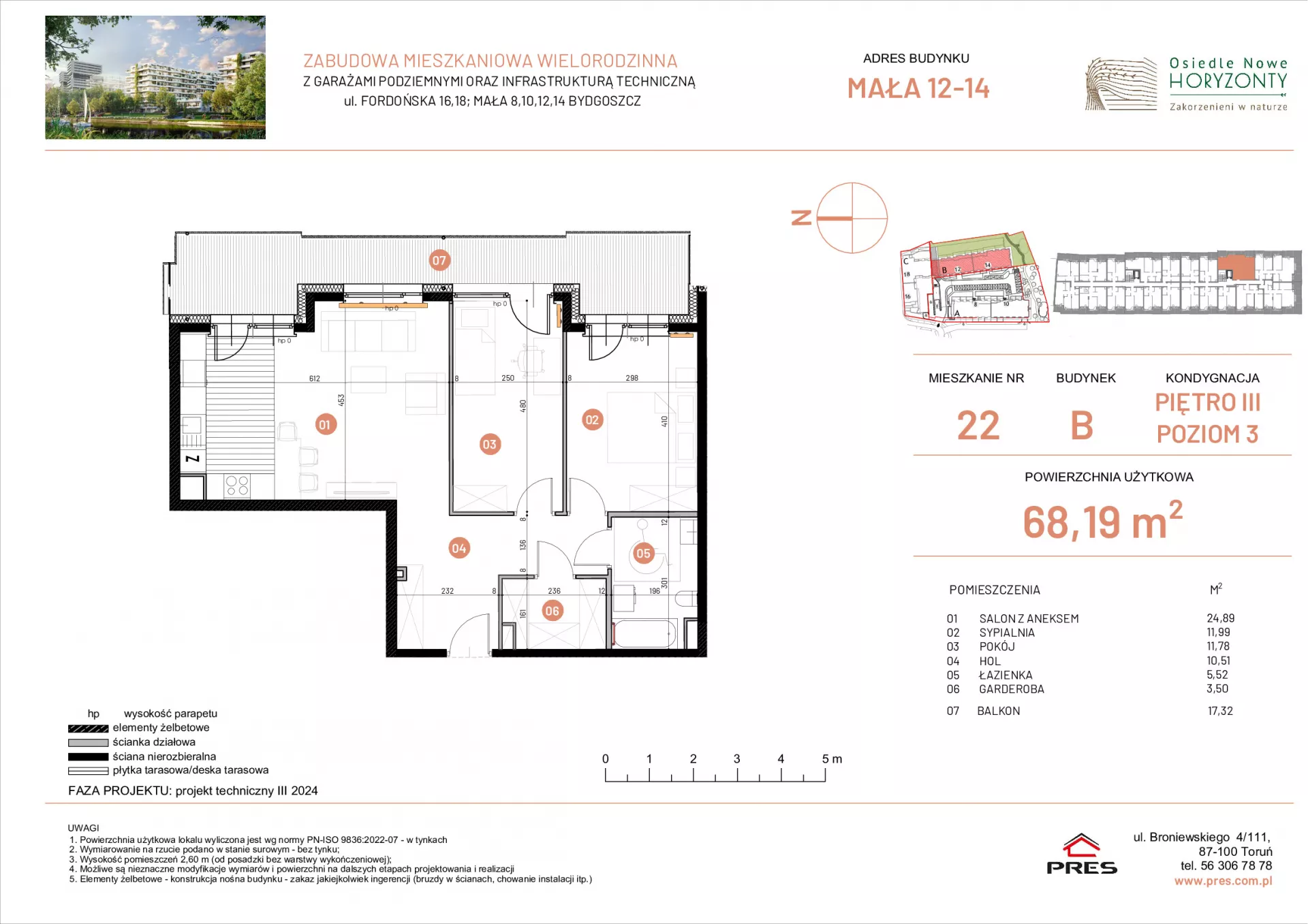 Udogodnienia: Nowe Horyzonty to innowacyjne rozwiązania m.in stacja zmiękczania wody, fotowoltaika na dachach zasilająca części wspólne, ekologiczne i automatyczne wykorzystanie wody deszczowej do podlewania, ograniczenie ruchu samochodowego na terenie osiedla (ok. 90% samochodów w halach garażowych podziemnych), stanowisko zewnętrzne do ładowania samochodów elektrycznych oraz możliwość doprowadzenia do każdego stanowiska instalacji do ładowania samochodów. Biedronka po drugiej stronie ulicy 207m, szkoła podstawowa, żłobek, przedszkole, park przy Balatonie, Fabryka Tańca.. Planowane prywatne przedszkole na terenie osiedla. Wyróżnik inwestycji: Lokalizacja blisko zieleni wraz z bulwarem tuż przy rzece Brdzie. Dobra okazja inwestycyjna pod najem długo-, jak i krótkoterminowy. Przynależności: Wózkownie, komórki i schowki. Balkon w każdym mieszkaniu. Tarasy i ogródki. Siłownia na świeżym powietrzu, tężnia solankowa. Docelowo ma być boisko Orlik (koszykówka, piłka nożna).Altany wraz z grillem. Górka saneczkowa. Zielony tunel. Naturalny plac zabaw. Bezpieczeństwo: Drzwi antywłamaniowe o podwyższonej izolacji akustycznej. Wideodomofony, monitoring zewnętrzny i hali garażowej.. Wielkość Projektu: 3 budynki wielorodzinne 7-piętrowe. I etap 149 mieszkań. Komórki lokatorskie. Garaże: Na terenie inwestycji powstaną 32 naziemne i 78 podziemne miejsca postojowe. Komunikacja: W pobliżu projektu znajdują się bardzo blisko przystanki autobusowe i tramwajowe. Dworzec PKS 4km, PKP Bydgoszcz Główna 5,2km Odległość od Centrum: 3,4km (ok. 6min samochodem). Szczegóły: Wysokość pomieszczeń 2,65m. Standard deweloperski.