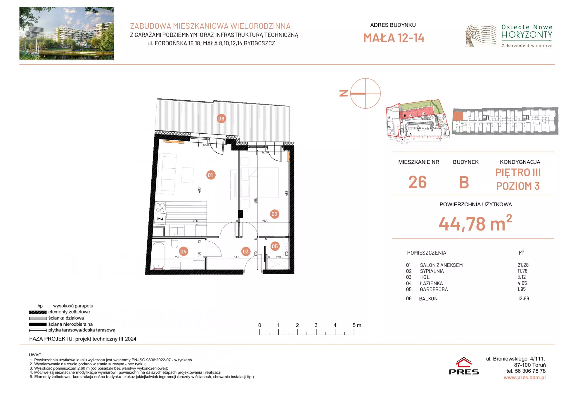 Udogodnienia: Nowe Horyzonty to innowacyjne rozwiązania m.in stacja zmiękczania wody, fotowoltaika na dachach zasilająca części wspólne, ekologiczne i automatyczne wykorzystanie wody deszczowej do podlewania, ograniczenie ruchu samochodowego na terenie osiedla (ok. 90% samochodów w halach garażowych podziemnych), stanowisko zewnętrzne do ładowania samochodów elektrycznych oraz możliwość doprowadzenia do każdego stanowiska instalacji do ładowania samochodów. Biedronka po drugiej stronie ulicy 207m, szkoła podstawowa, żłobek, przedszkole, park przy Balatonie, Fabryka Tańca.. Planowane prywatne przedszkole na terenie osiedla. Wyróżnik inwestycji: Lokalizacja blisko zieleni wraz z bulwarem tuż przy rzece Brdzie. Dobra okazja inwestycyjna pod najem długo-, jak i krótkoterminowy. Przynależności: Wózkownie, komórki i schowki. Balkon w każdym mieszkaniu. Tarasy i ogródki. Siłownia na świeżym powietrzu, tężnia solankowa. Docelowo ma być boisko Orlik (koszykówka, piłka nożna).Altany wraz z grillem. Górka saneczkowa. Zielony tunel. Naturalny plac zabaw. Bezpieczeństwo: Drzwi antywłamaniowe o podwyższonej izolacji akustycznej. Wideodomofony, monitoring zewnętrzny i hali garażowej.. Wielkość Projektu: 3 budynki wielorodzinne 7-piętrowe. I etap 149 mieszkań. Komórki lokatorskie. Garaże: Na terenie inwestycji powstaną 32 naziemne i 78 podziemne miejsca postojowe. Komunikacja: W pobliżu projektu znajdują się bardzo blisko przystanki autobusowe i tramwajowe. Dworzec PKS 4km, PKP Bydgoszcz Główna 5,2km Odległość od Centrum: 3,4km (ok. 6min samochodem). Szczegóły: Wysokość pomieszczeń 2,65m. Standard deweloperski.