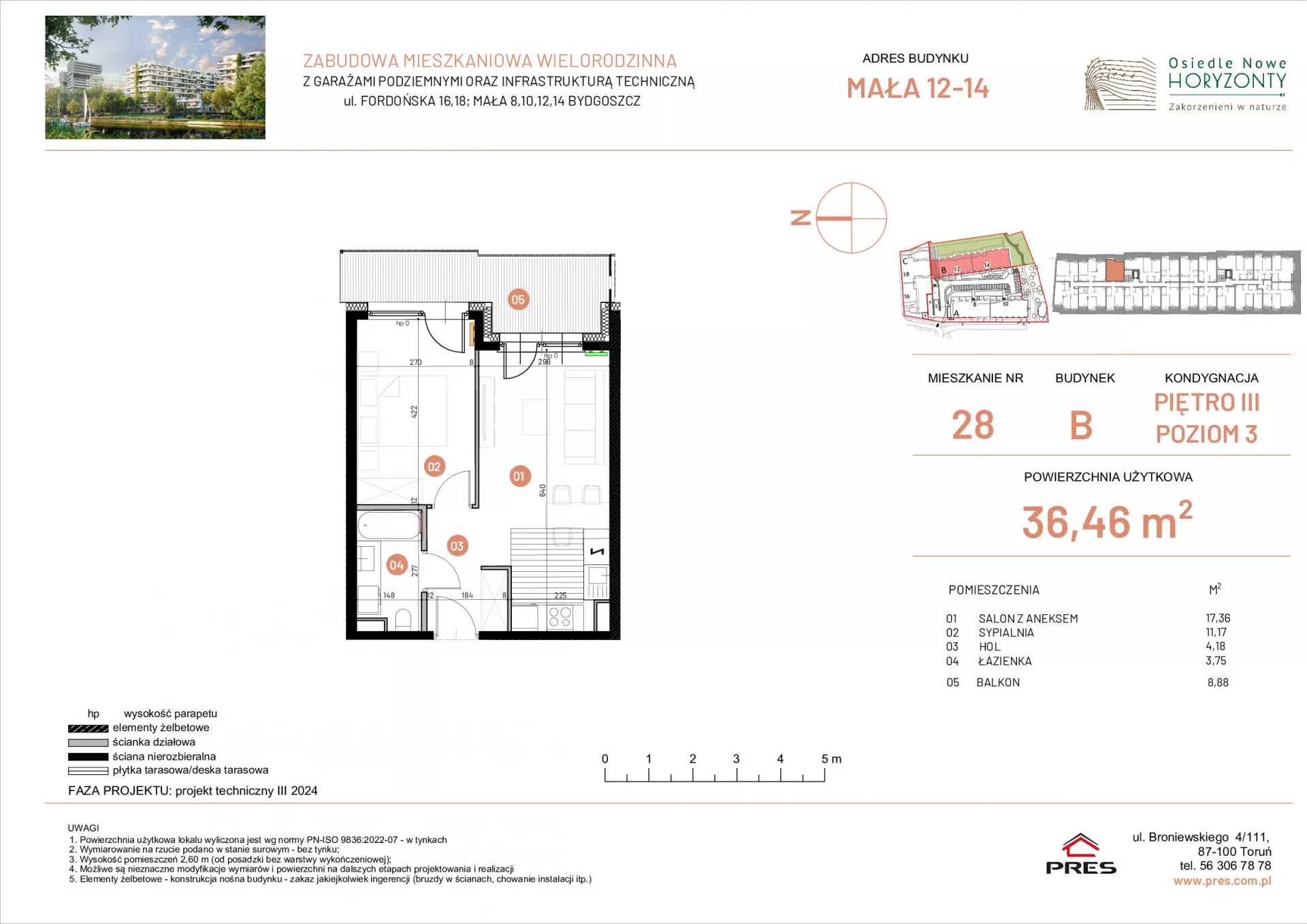 Udogodnienia: Nowe Horyzonty to innowacyjne rozwiązania m.in stacja zmiękczania wody, fotowoltaika na dachach zasilająca części wspólne, ekologiczne i automatyczne wykorzystanie wody deszczowej do podlewania, ograniczenie ruchu samochodowego na terenie osiedla (ok. 90% samochodów w halach garażowych podziemnych), stanowisko zewnętrzne do ładowania samochodów elektrycznych oraz możliwość doprowadzenia do każdego stanowiska instalacji do ładowania samochodów. Biedronka po drugiej stronie ulicy 207m, szkoła podstawowa, żłobek, przedszkole, park przy Balatonie, Fabryka Tańca.. Planowane prywatne przedszkole na terenie osiedla. Wyróżnik inwestycji: Lokalizacja blisko zieleni wraz z bulwarem tuż przy rzece Brdzie. Dobra okazja inwestycyjna pod najem długo-, jak i krótkoterminowy. Przynależności: Wózkownie, komórki i schowki. Balkon w każdym mieszkaniu. Tarasy i ogródki. Siłownia na świeżym powietrzu, tężnia solankowa. Docelowo ma być boisko Orlik (koszykówka, piłka nożna).Altany wraz z grillem. Górka saneczkowa. Zielony tunel. Naturalny plac zabaw. Bezpieczeństwo: Drzwi antywłamaniowe o podwyższonej izolacji akustycznej. Wideodomofony, monitoring zewnętrzny i hali garażowej.. Wielkość Projektu: 3 budynki wielorodzinne 7-piętrowe. I etap 149 mieszkań. Komórki lokatorskie. Garaże: Na terenie inwestycji powstaną 32 naziemne i 78 podziemne miejsca postojowe. Komunikacja: W pobliżu projektu znajdują się bardzo blisko przystanki autobusowe i tramwajowe. Dworzec PKS 4km, PKP Bydgoszcz Główna 5,2km Odległość od Centrum: 3,4km (ok. 6min samochodem). Szczegóły: Wysokość pomieszczeń 2,65m. Standard deweloperski.
