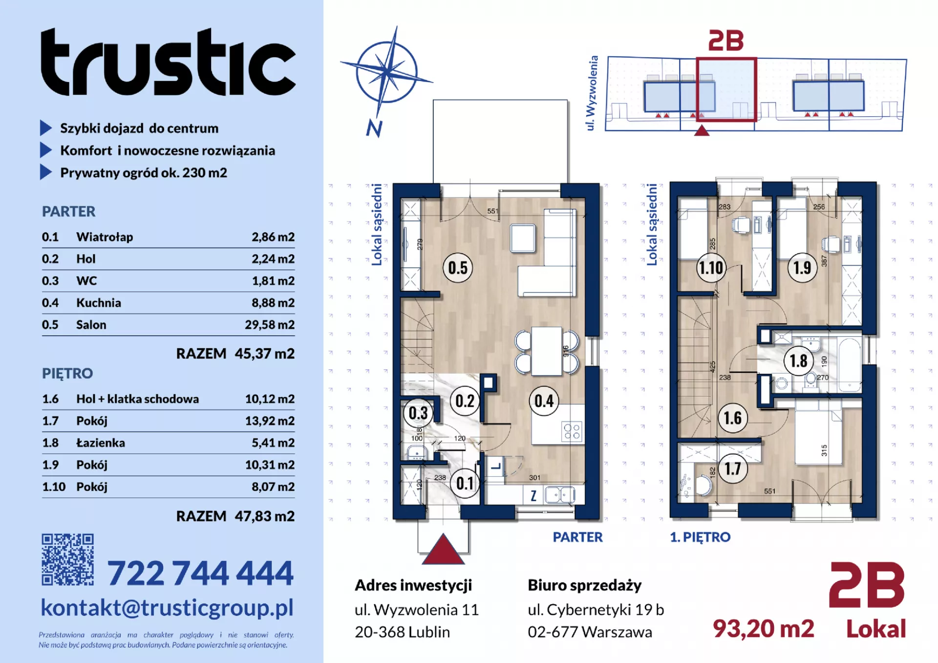 Nie musisz wyprowadzać się z miasta aby mieć dom! Każdy z 8 domów o kompaktowej powierzchni 93 m² to idealne połączenie funkcjonalności, nowoczesnego designu i komfortu. Przemyślane układy wnętrz zapewniają przestronność i maksymalne wykorzystanie powierzchni. Na parterze znajdziesz przestronny salon z aneksem kuchennym, który stanowi serce domu, toaletę oraz pomieszczenie gospodarcze. Piętro to trzy przytulne sypialnie i łazienka – wszystko, czego potrzebuje rodzina, by cieszyć się codziennym życiem. Twoja prywatna przestrzeń na świeżym powietrzu Każdy z domów posiada własny, intymny ogródek, który doskonale sprawdzi się jako miejsce relaksu, zabaw dla dzieci czy spotkań przy grillu. Osiedle znajduje się w spokojnej i zielonej okolicy, która oferuje ciszę i wytchnienie od miejskiego zgiełku, jednocześnie zapewniając szybki dostęp do centrum miasta. Bliskość szkół, przedszkoli, sklepów oraz terenów rekreacyjnych sprawia, że to idealne miejsce dla rodzin z dziećmi.