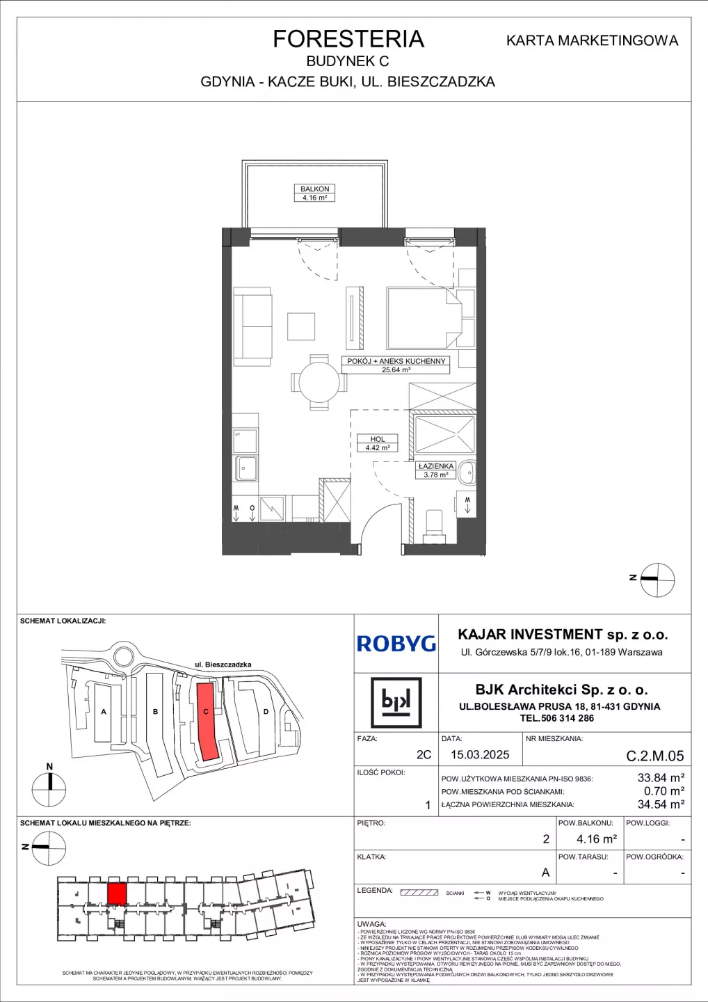MAKIETY 3D: https: //3destate.app/robyg/ Udogodnienia: nowoczesne architektura, zielona przestrzeń, mała architektura, pakiet SmartHome, wielofunkcyjne osiedle, doskonałe skomunikowanie z centrum, spokojna okolica Przynależności: ogród, taras, balkon Bezpieczeństwo: drzwi antywłamaniowe, monitoring, wideodomofon Wielkość Projektu: 127 mieszkań Garaże: Na terenie inwestycji powstanie 50 miejsc garażowych i 53 miejsc naziemnych Komunikacja: w pobliżu znajduje się obwodnica, droga ekspresowa S6 i przystanki autobusowe Odległość od Centrum: 12,7 km