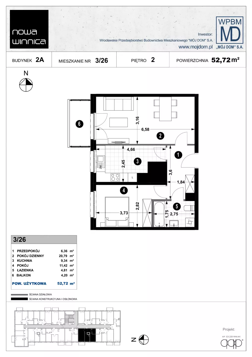 Udogodnienia: W pobliżu inwestycji znajdują się tereny zielone, plac zabaw, obiekty sportowe, stojaki na rowery. Przynależności: Każde mieszkanie posiada balkon lub ogródek. Bezpieczeństwo: Domofon. Wielkość Projektu: Inwestycja posiada 52 mieszkań. Garaże: W inwestycji będą dostępne miejsca postojowe. Komunikacja: 1,7km stacja PKP Odległość od Centrum: 28km.
