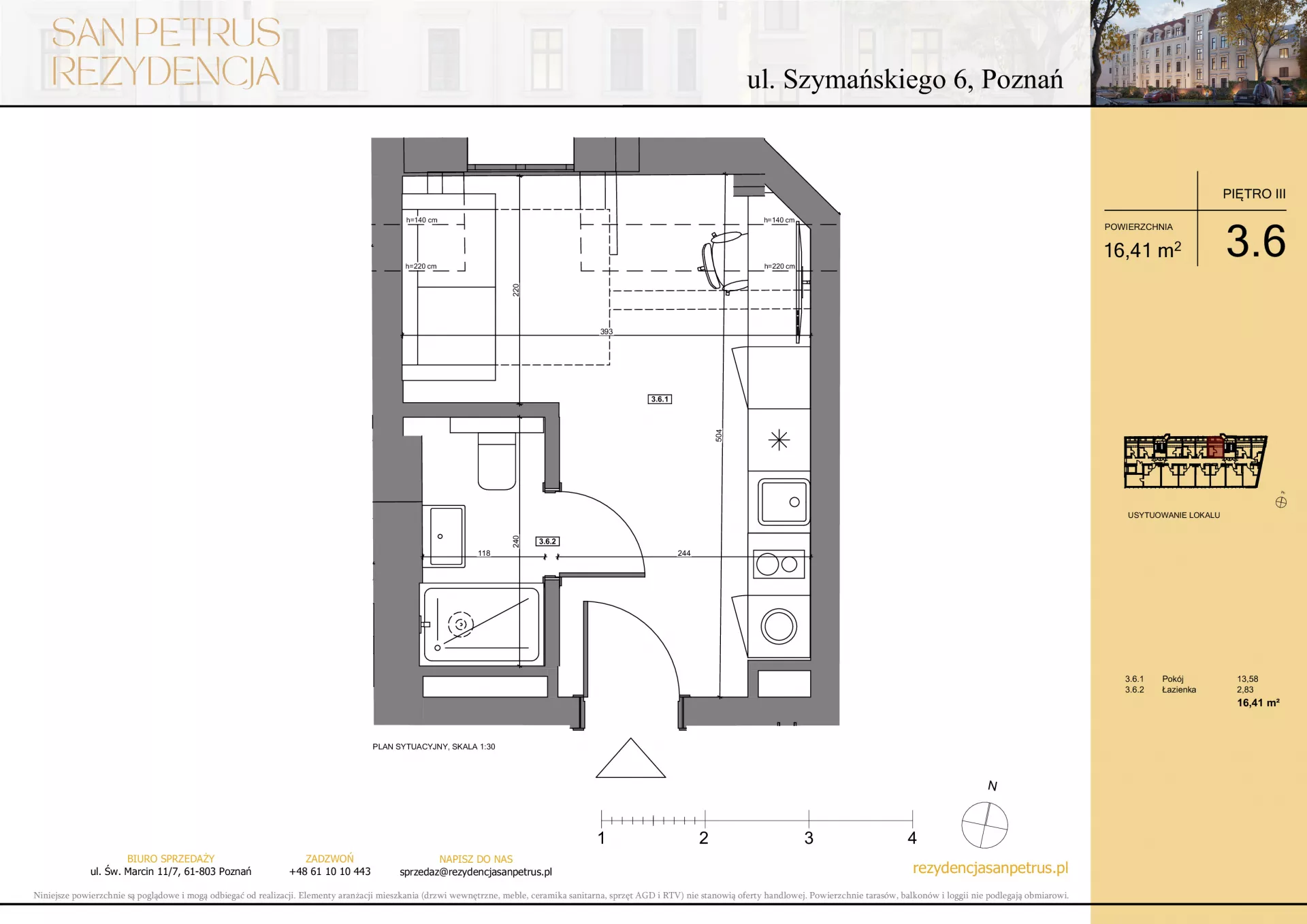 Udogodnienia: nowoczesne apartamenty, eleganckie części wspólne, cicha winda, pakiet pod klucz, architektura w stylu klasycystycznym, sauna, siłownia, rowerownia, prestiżowa lokalizacja, łatwy dostęp do miejskich udogodnień Bezpieczeństwo: teren ogrodzony Wielkość Projektu: 78 lokali inwestycyjnych Garaże: Na terenie inwestycji będą dostępne miesca postojowe naziemne i garażowe Komunikacja: W pobliżu inwestycji znajdują się przystanki autobusowe i tramwajowe oraz stacja kolejowa Odległość od Centrum: Inwestycja znajduje się w centrum miasta