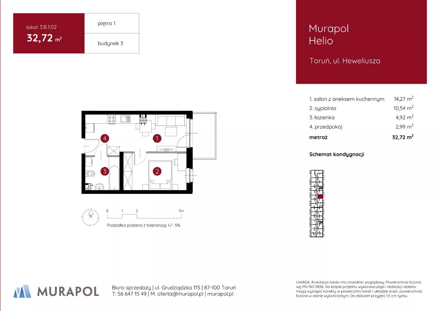 Opis: Kompaktowe 1-, 2- i 3-pokojowe mieszkania oraz zróżnicowane metraże od 26 do nawet 88 mkw. w przypadku lokali z antresolami to doskonała propozycja nie tylko dla rodzin z dziećmi, ale również singli czy par chcących na co dzień być blisko przyrody. Wysokość tych lokali sięga nawet 5,5 m. Dwa budynki, które wyróżnia kameralna i minimalistyczna architektura harmonijnie wkomponowująca się w naturalne otoczenie lasu. Mieszkania na piętrach będą posiadały nawet dwa balkony, a w przypadku wybranych lokali przestronne tarasy o pow. aż do 38 mkw. Udogodnienia: tereny zielone, blisko komunikacji miejskiej i centrum miasta, Smart Home (korzystanie z urządzeń Smart Home za pomocą aplikacji mobilnej, jak i manualnie. Możliwe jest m.in. sterowane ogrzewaniem, oświetleniem czy zaworami wody), winda, lokale usługowe, pakiet antysmogowy (zabezpieczenie przeciw zanieczyszczeniami, alergenami, pyłkami roślin czy owadami), stacja ładowania aut elektrycznych, stojaki rowerowe, oświetlenie LED części wspólnych Przynależności: Wybrukowane kostką tarasy z zielonymi ogródkami o powierzchni nawet 60 mkw. będą przynależeć do wszystkich mieszkań na parterach, balkon, miejsce postojowe Bezpieczeństwo: domofon, monitoring, drzwi antywłamaniowe, teren zamknięty Wielkość Projektu: 128 mieszkań Garaże: Deweloper przewidział miejsca postojowe dla mieszkańców inwestycji. Komunikacja: stacja kolejowa Toruń Katarzynka znajduje się w odległości 10-minutowej przejażdżki rowerem. przy nowej pętli tramwajowej „Heweliusza”. Trasa do placu NOT zajmuje stąd zaledwie 20 min liniami nr 6 lub nr 3. Odległość od Centrum: 7,5 km (ok 20min samochodem)