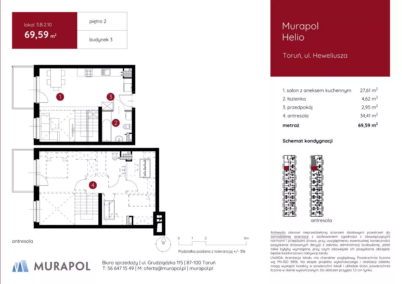 Opis: Kompaktowe 1-, 2- i 3-pokojowe mieszkania oraz zróżnicowane metraże od 26 do nawet 88 mkw. w przypadku lokali z antresolami to doskonała propozycja nie tylko dla rodzin z dziećmi, ale również singli czy par chcących na co dzień być blisko przyrody. Wysokość tych lokali sięga nawet 5,5 m. Dwa budynki, które wyróżnia kameralna i minimalistyczna architektura harmonijnie wkomponowująca się w naturalne otoczenie lasu. Mieszkania na piętrach będą posiadały nawet dwa balkony, a w przypadku wybranych lokali przestronne tarasy o pow. aż do 38 mkw. Udogodnienia: tereny zielone, blisko komunikacji miejskiej i centrum miasta, Smart Home (korzystanie z urządzeń Smart Home za pomocą aplikacji mobilnej, jak i manualnie. Możliwe jest m.in. sterowane ogrzewaniem, oświetleniem czy zaworami wody), winda, lokale usługowe, pakiet antysmogowy (zabezpieczenie przeciw zanieczyszczeniami, alergenami, pyłkami roślin czy owadami), stacja ładowania aut elektrycznych, stojaki rowerowe, oświetlenie LED części wspólnych Przynależności: Wybrukowane kostką tarasy z zielonymi ogródkami o powierzchni nawet 60 mkw. będą przynależeć do wszystkich mieszkań na parterach, balkon, miejsce postojowe Bezpieczeństwo: domofon, monitoring, drzwi antywłamaniowe, teren zamknięty Wielkość Projektu: 128 mieszkań Garaże: Deweloper przewidział miejsca postojowe dla mieszkańców inwestycji. Komunikacja: stacja kolejowa Toruń Katarzynka znajduje się w odległości 10-minutowej przejażdżki rowerem. przy nowej pętli tramwajowej „Heweliusza”. Trasa do placu NOT zajmuje stąd zaledwie 20 min liniami nr 6 lub nr 3. Odległość od Centrum: 7,5 km (ok 20min samochodem)
