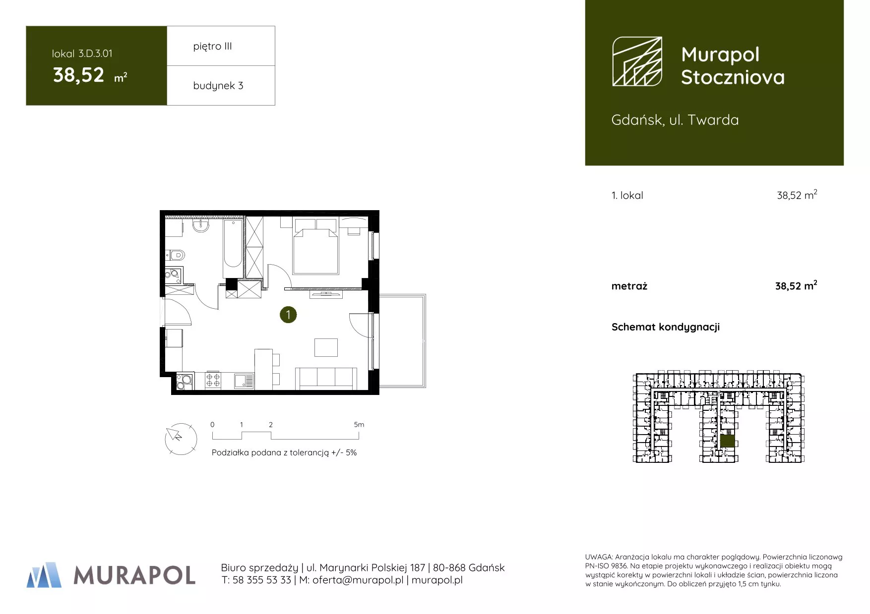 Udogodnienia: nowoczesna architektura, wysoki standard wykończenia, winda, stacja ładowania samochodów elektrycznych, pakiet antysmogowy, smart home, komórki lokatorskie, tereny zielone - Park Steffensów, Park Akademicki czy Park Daniela Gralatha, blisko komunikacji miejskiej i centrum miasta; w pobliżu znajdują się plaża w Brzeźnie, Arena Gdańska, Opera Bałtycka, hala gastronomiczna Montownia oraz 100cznia, galerie handlowe Forum Gdańsk i Galeria Bałtycka Przynależności: balkon, taras z ogródkiem Bezpieczeństwo: drzwi antywłamaniowe, domofon Wielkość Projektu: 336 apartamentów inwestycyjnych Garaże: Na terenie inwestycji powstaną miejsca postojowe w hali garażowej Komunikacja: tramwaj i autobus 450 m Odległość od Centrum: 3,2 km