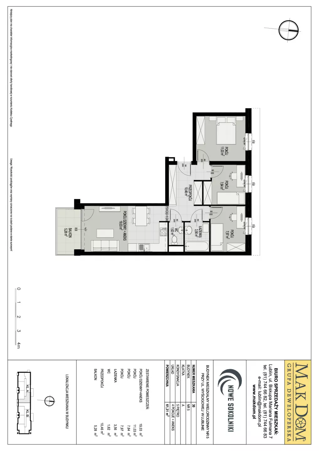 Udogodnienia: W pobliżu inwestycji znajdują się punkty usługowe, handlowe, rekreacyjno-wypoczynkowe jak również placówki edukacyjne. Przynależności: Mieszkania posiadają balkon, taras lub ogródek. Deweloper przewidział również komórki lokatorskie. Bezpieczeństwo: domofon, drzwi antywłamaniowe Wielkość Projektu: Całość projektu to obszar o niskiej zabudowie, który składa się z siedmiu budynków. W budynku nr 5 oferujemy 60 mieszkań. Garaże: W inwestycji będą miejsca postojowe podziemne i naziemne. Komunikacja: Autobus 450 metrów. Odległość od Centrum: 3 km.