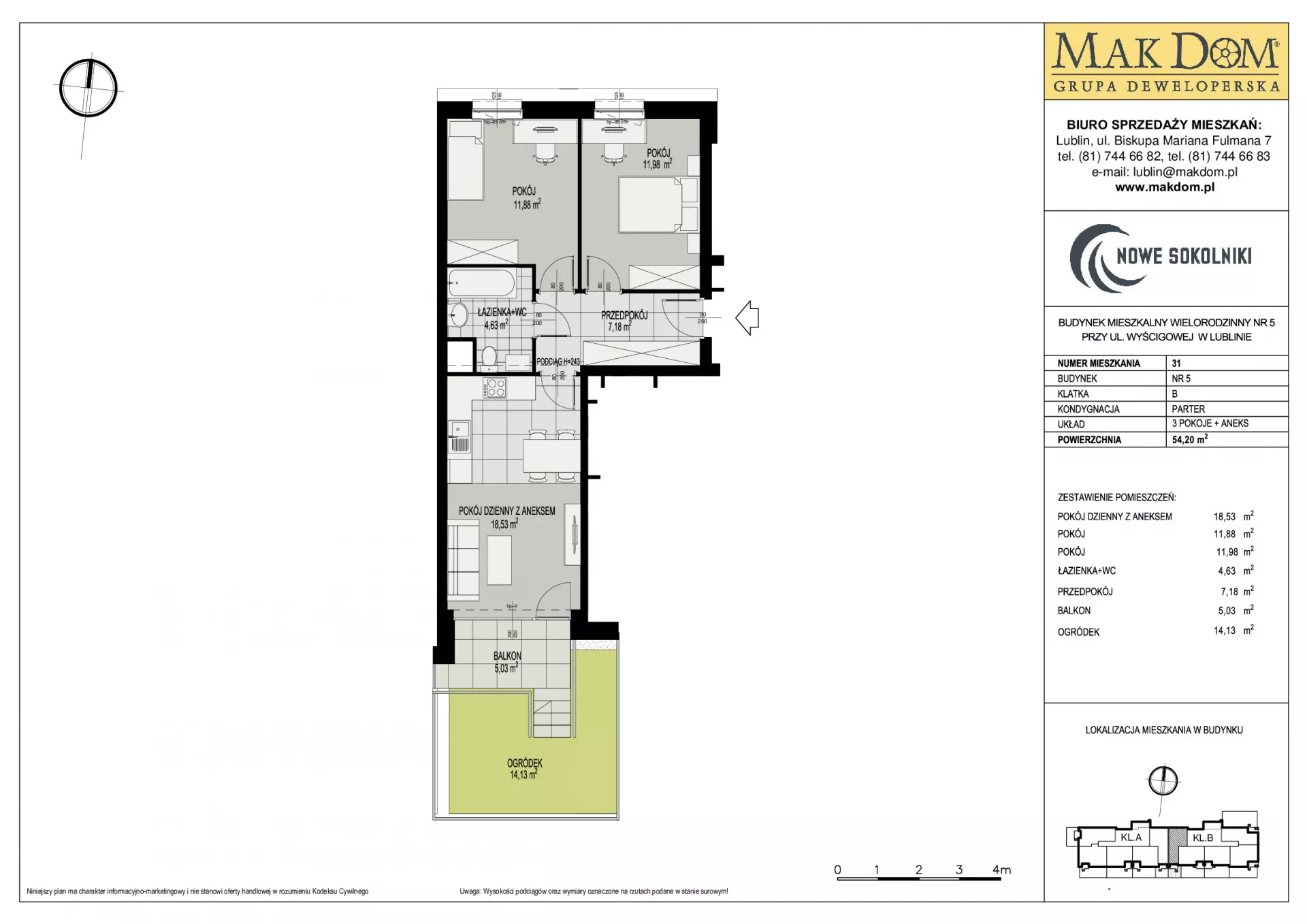 Udogodnienia: W pobliżu inwestycji znajdują się punkty usługowe, handlowe, rekreacyjno-wypoczynkowe jak również placówki edukacyjne. Przynależności: Mieszkania posiadają balkon, taras lub ogródek. Deweloper przewidział również komórki lokatorskie. Bezpieczeństwo: domofon, drzwi antywłamaniowe Wielkość Projektu: Całość projektu to obszar o niskiej zabudowie, który składa się z siedmiu budynków. W budynku nr 5 oferujemy 60 mieszkań. Garaże: W inwestycji będą miejsca postojowe podziemne i naziemne. Komunikacja: Autobus 450 metrów. Odległość od Centrum: 3 km.