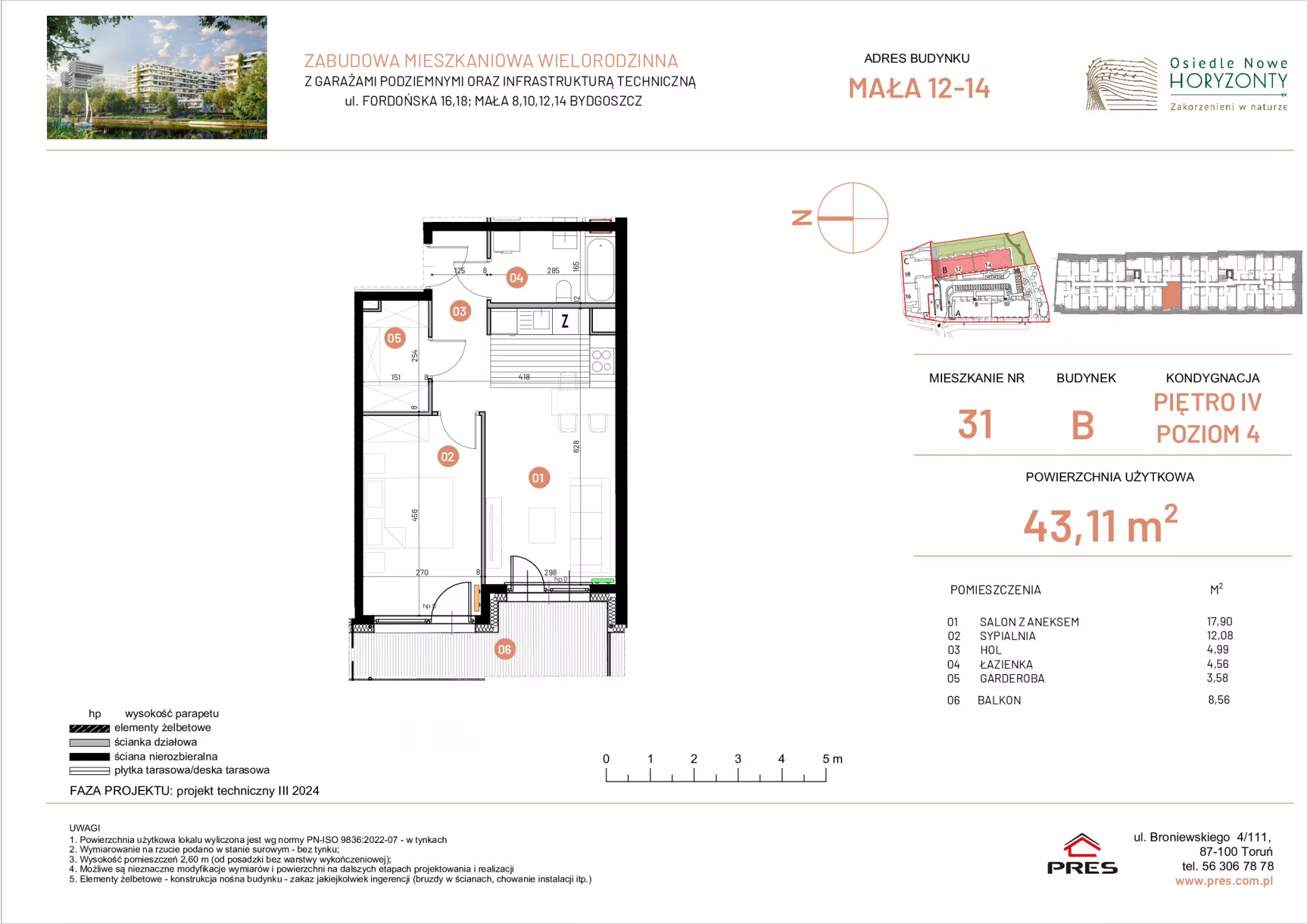 Udogodnienia: Nowe Horyzonty to innowacyjne rozwiązania m.in stacja zmiękczania wody, fotowoltaika na dachach zasilająca części wspólne, ekologiczne i automatyczne wykorzystanie wody deszczowej do podlewania, ograniczenie ruchu samochodowego na terenie osiedla (ok. 90% samochodów w halach garażowych podziemnych), stanowisko zewnętrzne do ładowania samochodów elektrycznych oraz możliwość doprowadzenia do każdego stanowiska instalacji do ładowania samochodów. Biedronka po drugiej stronie ulicy 207m, szkoła podstawowa, żłobek, przedszkole, park przy Balatonie, Fabryka Tańca.. Planowane prywatne przedszkole na terenie osiedla. Wyróżnik inwestycji: Lokalizacja blisko zieleni wraz z bulwarem tuż przy rzece Brdzie. Dobra okazja inwestycyjna pod najem długo-, jak i krótkoterminowy. Przynależności: Wózkownie, komórki i schowki. Balkon w każdym mieszkaniu. Tarasy i ogródki. Siłownia na świeżym powietrzu, tężnia solankowa. Docelowo ma być boisko Orlik (koszykówka, piłka nożna).Altany wraz z grillem. Górka saneczkowa. Zielony tunel. Naturalny plac zabaw. Bezpieczeństwo: Drzwi antywłamaniowe o podwyższonej izolacji akustycznej. Wideodomofony, monitoring zewnętrzny i hali garażowej.. Wielkość Projektu: 3 budynki wielorodzinne 7-piętrowe. I etap 149 mieszkań. Komórki lokatorskie. Garaże: Na terenie inwestycji powstaną 32 naziemne i 78 podziemne miejsca postojowe. Komunikacja: W pobliżu projektu znajdują się bardzo blisko przystanki autobusowe i tramwajowe. Dworzec PKS 4km, PKP Bydgoszcz Główna 5,2km Odległość od Centrum: 3,4km (ok. 6min samochodem). Szczegóły: Wysokość pomieszczeń 2,65m. Standard deweloperski.