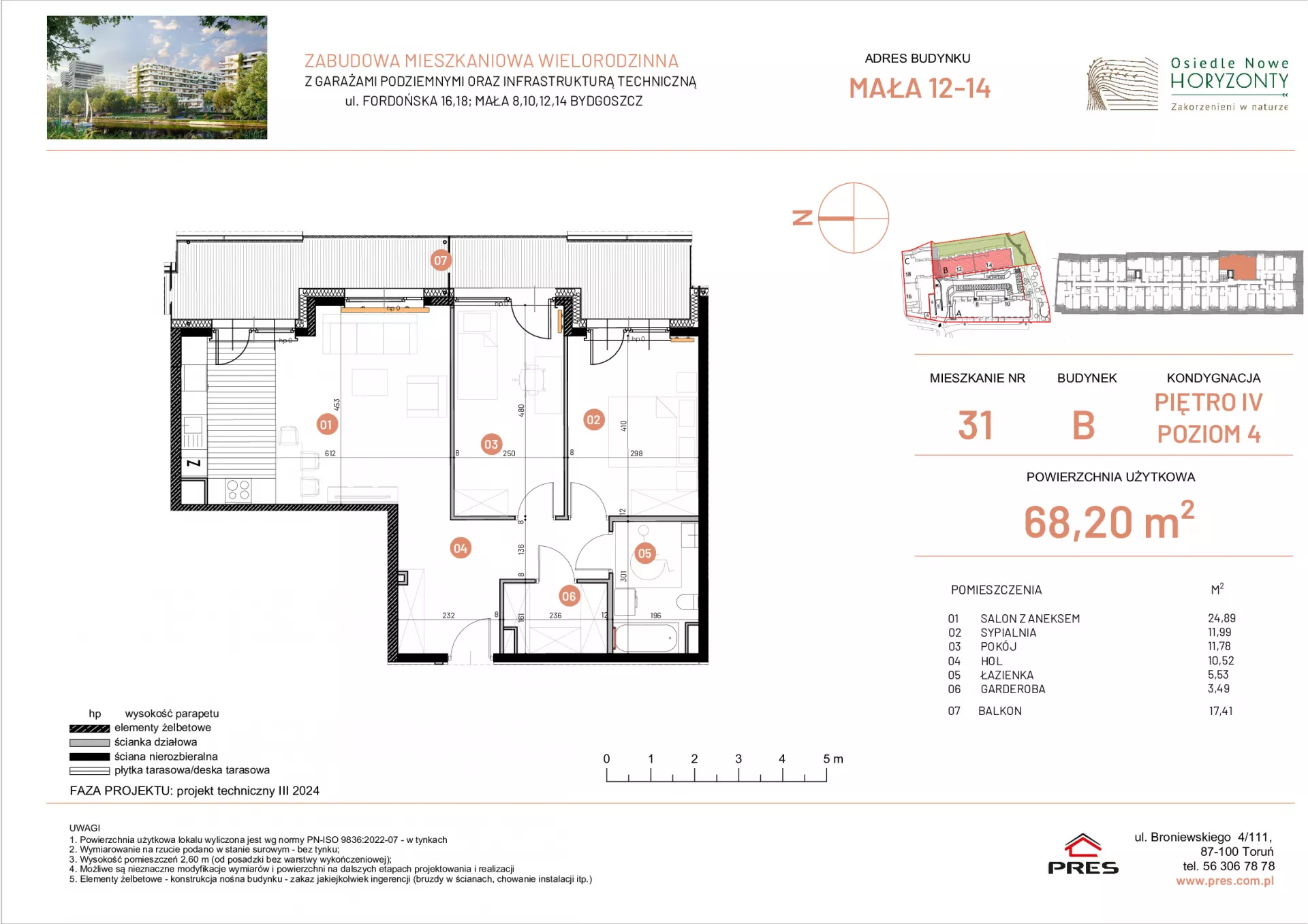 Udogodnienia: Nowe Horyzonty to innowacyjne rozwiązania m.in stacja zmiękczania wody, fotowoltaika na dachach zasilająca części wspólne, ekologiczne i automatyczne wykorzystanie wody deszczowej do podlewania, ograniczenie ruchu samochodowego na terenie osiedla (ok. 90% samochodów w halach garażowych podziemnych), stanowisko zewnętrzne do ładowania samochodów elektrycznych oraz możliwość doprowadzenia do każdego stanowiska instalacji do ładowania samochodów. Biedronka po drugiej stronie ulicy 207m, szkoła podstawowa, żłobek, przedszkole, park przy Balatonie, Fabryka Tańca.. Planowane prywatne przedszkole na terenie osiedla. Wyróżnik inwestycji: Lokalizacja blisko zieleni wraz z bulwarem tuż przy rzece Brdzie. Dobra okazja inwestycyjna pod najem długo-, jak i krótkoterminowy. Przynależności: Wózkownie, komórki i schowki. Balkon w każdym mieszkaniu. Tarasy i ogródki. Siłownia na świeżym powietrzu, tężnia solankowa. Docelowo ma być boisko Orlik (koszykówka, piłka nożna).Altany wraz z grillem. Górka saneczkowa. Zielony tunel. Naturalny plac zabaw. Bezpieczeństwo: Drzwi antywłamaniowe o podwyższonej izolacji akustycznej. Wideodomofony, monitoring zewnętrzny i hali garażowej.. Wielkość Projektu: 3 budynki wielorodzinne 7-piętrowe. I etap 149 mieszkań. Komórki lokatorskie. Garaże: Na terenie inwestycji powstaną 32 naziemne i 78 podziemne miejsca postojowe. Komunikacja: W pobliżu projektu znajdują się bardzo blisko przystanki autobusowe i tramwajowe. Dworzec PKS 4km, PKP Bydgoszcz Główna 5,2km Odległość od Centrum: 3,4km (ok. 6min samochodem). Szczegóły: Wysokość pomieszczeń 2,65m. Standard deweloperski.