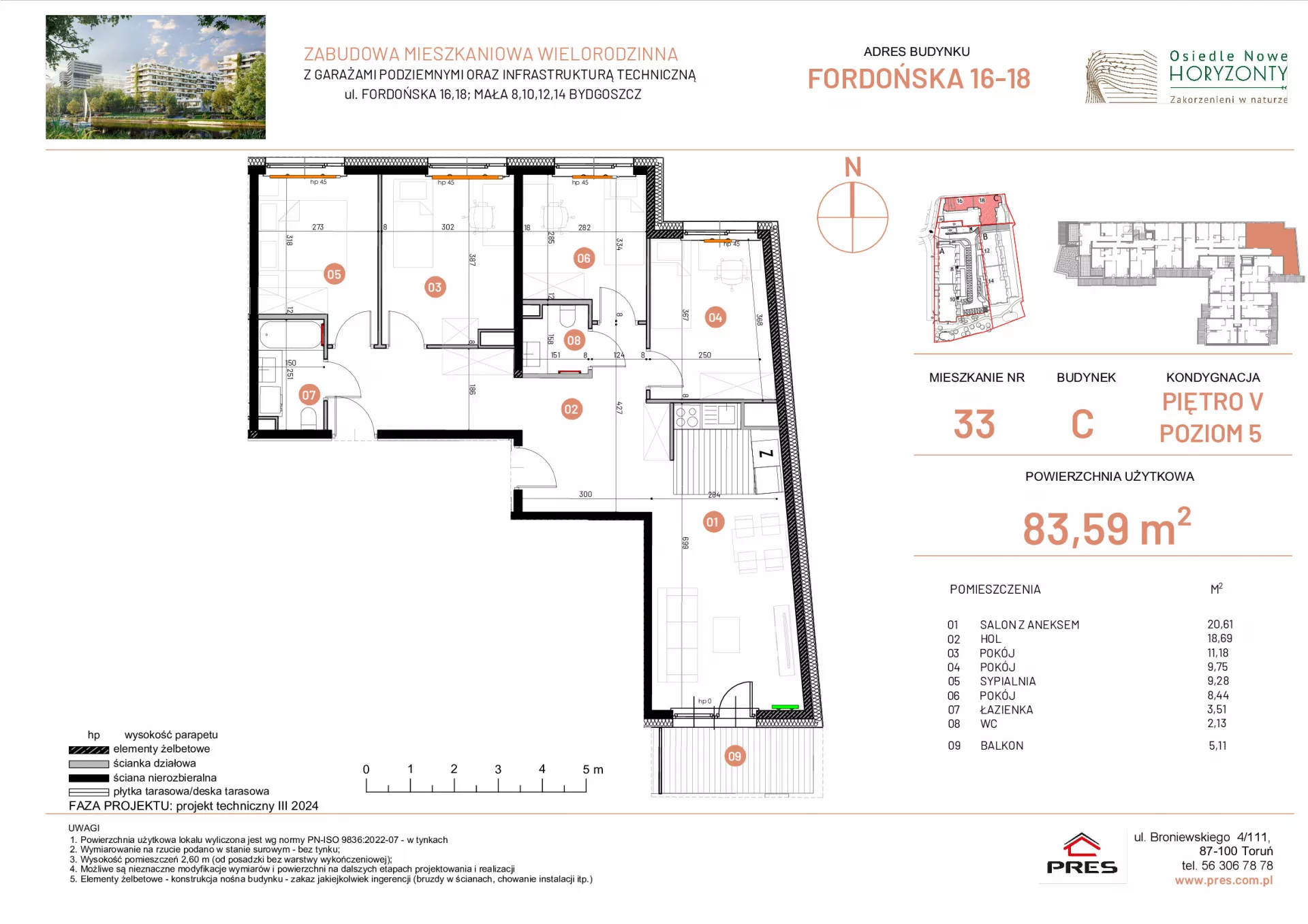 Udogodnienia: Nowe Horyzonty to innowacyjne rozwiązania m.in stacja zmiękczania wody, fotowoltaika na dachach zasilająca części wspólne, ekologiczne i automatyczne wykorzystanie wody deszczowej do podlewania, ograniczenie ruchu samochodowego na terenie osiedla (ok. 90% samochodów w halach garażowych podziemnych), stanowisko zewnętrzne do ładowania samochodów elektrycznych oraz możliwość doprowadzenia do każdego stanowiska instalacji do ładowania samochodów. Biedronka po drugiej stronie ulicy 207m, szkoła podstawowa, żłobek, przedszkole, park przy Balatonie, Fabryka Tańca.. Planowane prywatne przedszkole na terenie osiedla. Wyróżnik inwestycji: Lokalizacja blisko zieleni wraz z bulwarem tuż przy rzece Brdzie. Dobra okazja inwestycyjna pod najem długo-, jak i krótkoterminowy. Przynależności: Wózkownie, komórki i schowki. Balkon w każdym mieszkaniu. Tarasy i ogródki. Siłownia na świeżym powietrzu, tężnia solankowa. Docelowo ma być boisko Orlik (koszykówka, piłka nożna).Altany wraz z grillem. Górka saneczkowa. Zielony tunel. Naturalny plac zabaw. Bezpieczeństwo: Drzwi antywłamaniowe o podwyższonej izolacji akustycznej. Wideodomofony, monitoring zewnętrzny i hali garażowej.. Wielkość Projektu: 3 budynki wielorodzinne 7-piętrowe. I etap 149 mieszkań. Komórki lokatorskie. Garaże: Na terenie inwestycji powstaną 32 naziemne i 78 podziemne miejsca postojowe. Komunikacja: W pobliżu projektu znajdują się bardzo blisko przystanki autobusowe i tramwajowe. Dworzec PKS 4km, PKP Bydgoszcz Główna 5,2km Odległość od Centrum: 3,4km (ok. 6min samochodem). Szczegóły: Wysokość pomieszczeń 2,65m. Standard deweloperski.
