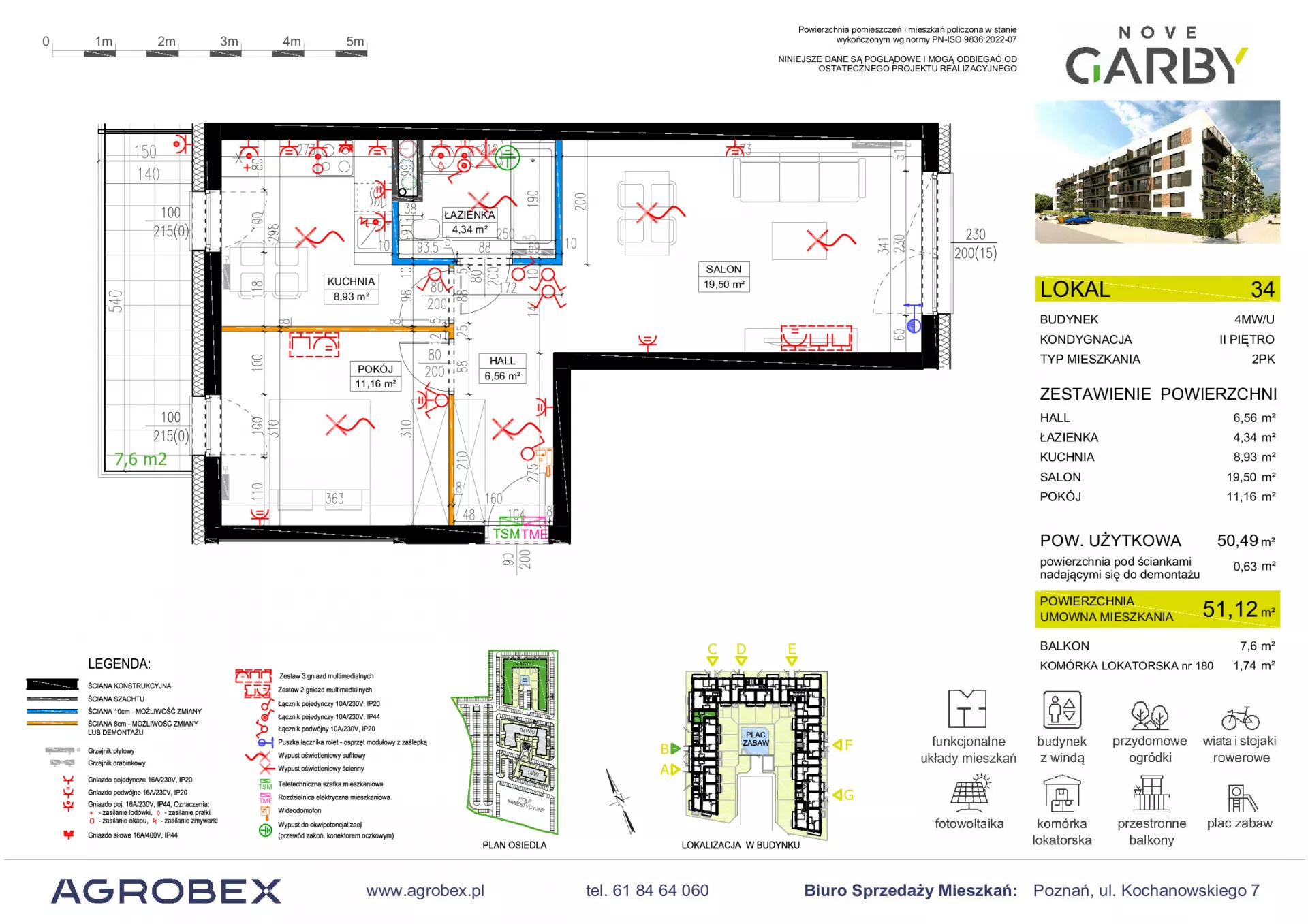 Udogodnienia: plac zabaw, wiaty i stojaki na rowery, dogodnie rozbudowana sieć transportu miejskiego; w okolicy bliskość terenów zielonych - Las przy Swarzędzu, Jezioro Swarzędzkie oraz punktów handlowo-usługowych Przynależności: prywatny ogródek, taras Bezpieczeństwo: domofon Wielkość Projektu: 143 mieszkań Garaże: Deweloper przewidział indywidualne i ogólnodostępne naziemne miejsca postojowe Komunikacja: przystanek autobusowy 2 minuty pieszo od inwestycji Odległość od Centrum: 14,3 km