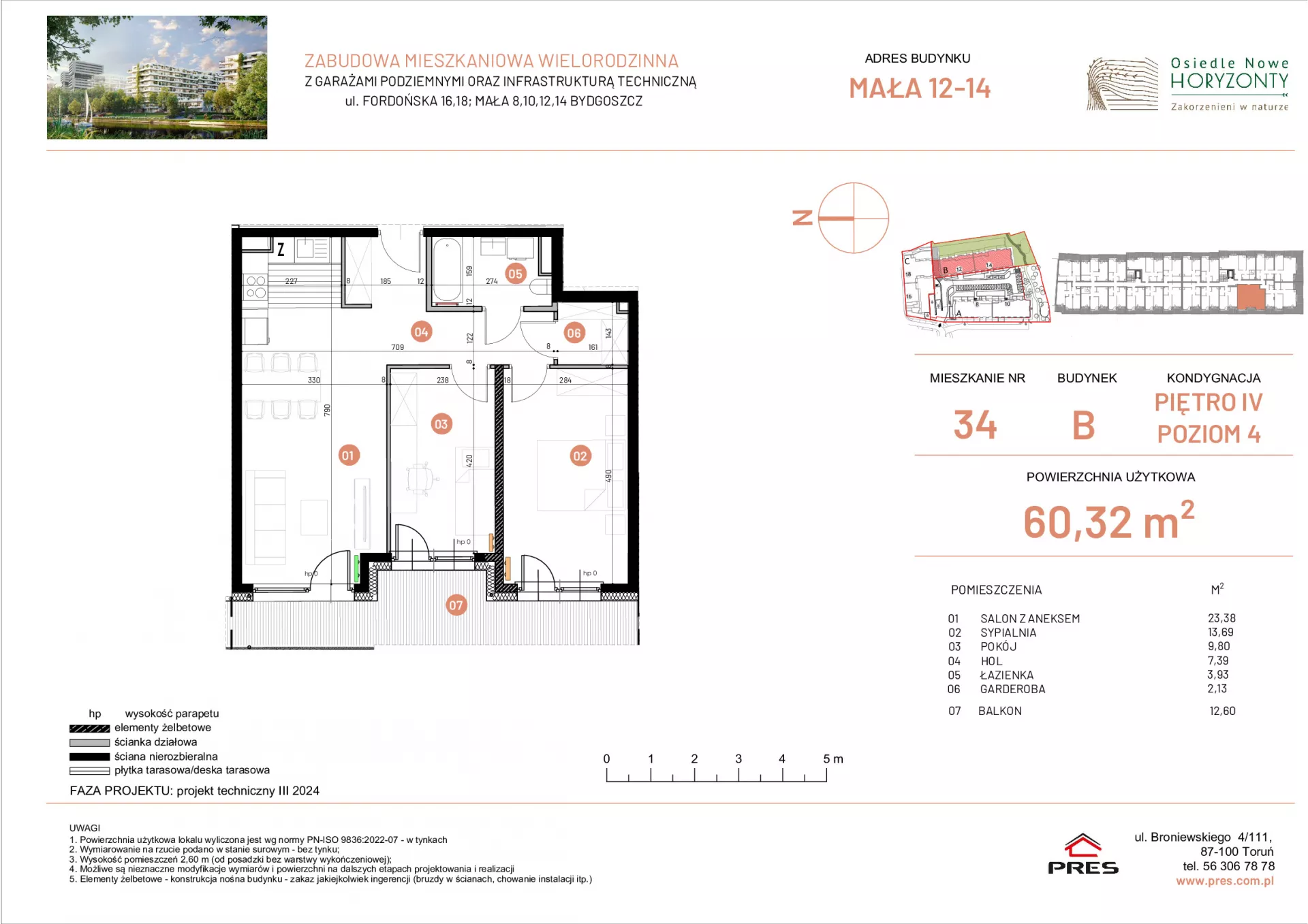 Udogodnienia: Nowe Horyzonty to innowacyjne rozwiązania m.in stacja zmiękczania wody, fotowoltaika na dachach zasilająca części wspólne, ekologiczne i automatyczne wykorzystanie wody deszczowej do podlewania, ograniczenie ruchu samochodowego na terenie osiedla (ok. 90% samochodów w halach garażowych podziemnych), stanowisko zewnętrzne do ładowania samochodów elektrycznych oraz możliwość doprowadzenia do każdego stanowiska instalacji do ładowania samochodów. Biedronka po drugiej stronie ulicy 207m, szkoła podstawowa, żłobek, przedszkole, park przy Balatonie, Fabryka Tańca.. Planowane prywatne przedszkole na terenie osiedla. Wyróżnik inwestycji: Lokalizacja blisko zieleni wraz z bulwarem tuż przy rzece Brdzie. Dobra okazja inwestycyjna pod najem długo-, jak i krótkoterminowy. Przynależności: Wózkownie, komórki i schowki. Balkon w każdym mieszkaniu. Tarasy i ogródki. Siłownia na świeżym powietrzu, tężnia solankowa. Docelowo ma być boisko Orlik (koszykówka, piłka nożna).Altany wraz z grillem. Górka saneczkowa. Zielony tunel. Naturalny plac zabaw. Bezpieczeństwo: Drzwi antywłamaniowe o podwyższonej izolacji akustycznej. Wideodomofony, monitoring zewnętrzny i hali garażowej.. Wielkość Projektu: 3 budynki wielorodzinne 7-piętrowe. I etap 149 mieszkań. Komórki lokatorskie. Garaże: Na terenie inwestycji powstaną 32 naziemne i 78 podziemne miejsca postojowe. Komunikacja: W pobliżu projektu znajdują się bardzo blisko przystanki autobusowe i tramwajowe. Dworzec PKS 4km, PKP Bydgoszcz Główna 5,2km Odległość od Centrum: 3,4km (ok. 6min samochodem). Szczegóły: Wysokość pomieszczeń 2,65m. Standard deweloperski.