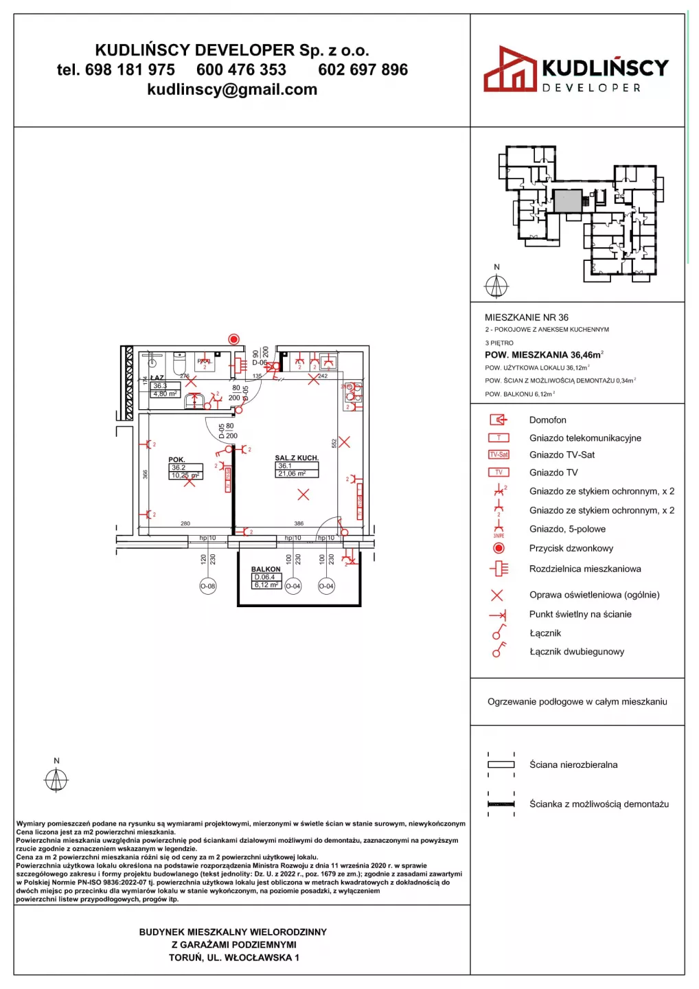 Udogodnienia: Centrum miasta - blisko na Stary Rynek. Przynależności: Każde mieszkanie posiada balkon. Każde posiada przewidzianą komórkę lokatorską. Bezpieczeństwo: Domofon, drzwi antywłamaniowe Wielkość Projektu: Inwestycja składa się z 1 budynku wielorodzinnego 4 piętrowego, 1 hala garażowa + 6 miejsc parkingowych naziemnych , 1 winda , w których mieści się 39 lokali mieszkalnych Garaże: 34 miejsc w hali garażowej (poziom -1 ). Komunikacja: Inwestycja zlokalizowana jest obok przystanków autobusowych, w niedalekiej odległości od PKP Dworzec Główny Toruń. Dworzec PKP Toruń Główna 760m, tramwaj 156m, autobus 230m Odległość od Centrum: centrum UWAGI: NIE KORZYSTAĆ Z WIZUALIZACJI DEWELOPERA - SKORZYSTAJ Z ZDJĘĆ WYKOŃCZONYCH LOKALI