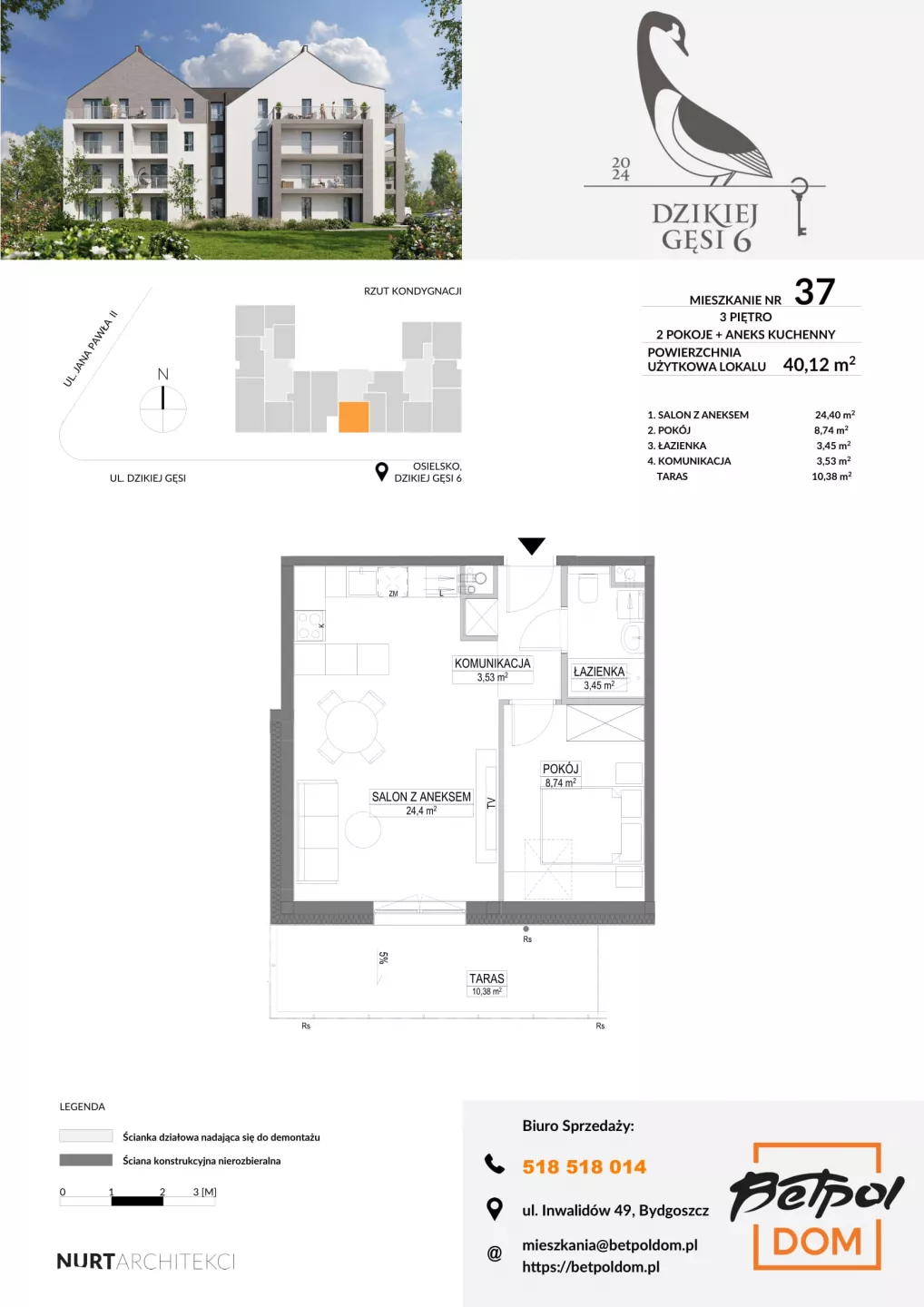 Udogodnienia: Nowoczesny budynek. Tereny zielone, blisko centrum i komunikacji miejskiej, w pobliżu znajdują się sklepy - Galeria Osielsko, Biedronka, Polo, banki - BS Bydgoszcz oraz Santander, szkoły- w Osielsku (z basenem), w Niemczu, żłobki i przedszkola, restauracje, blisko do wjazdu na drogę S5, w zasięgu Bolta i Ubera, punkty usługowe, cicha i spokojna okolica Przynależności: Taras (lokale na parterze), rowerownia, sala fitness (ok. 26k.kw.) Bezpieczeństwo: Drzwi antywłamaniowe kl. minimum RC2, wideodomofon, alarm, monitoring Wielkość Projektu: 4 kondygnacje, 3 klatki schodowe, 3 windy 61 mieszkania, komórki lokatorskie zlokalizowane na piętrach i półpiętrach, Garaże: Na terenie inwestycji przewidziano 37 podziemne miejsca postojowe w hali garażowej oraz 24 naziemne miejsca postojowe. Komunikacja: W pobliżu inwestycji znajduje się rozbudowana sieć autobusowa - najbliższy przystanek znajduje się w odległości 190 m od inwestycji Odległość od Centrum: 9,5 km Szczegóły: Cichobieżna winda, instalacja fotowoltaiczna, podgrzewany wjazd do hali garażowej, wysokość pomieszczeń 2.65m; Ściany – tynk cementowo – wapienny/lub gipsowy, bez gładzi. UWAGA: Możliwość, cesji. Możliwość uzyskania zgody wspólnoty na nieuciążliwą działalność gospodarczą. Finansowanie 60% ze środków własnych Dewelopera, w 40% z wpłat od klientów.