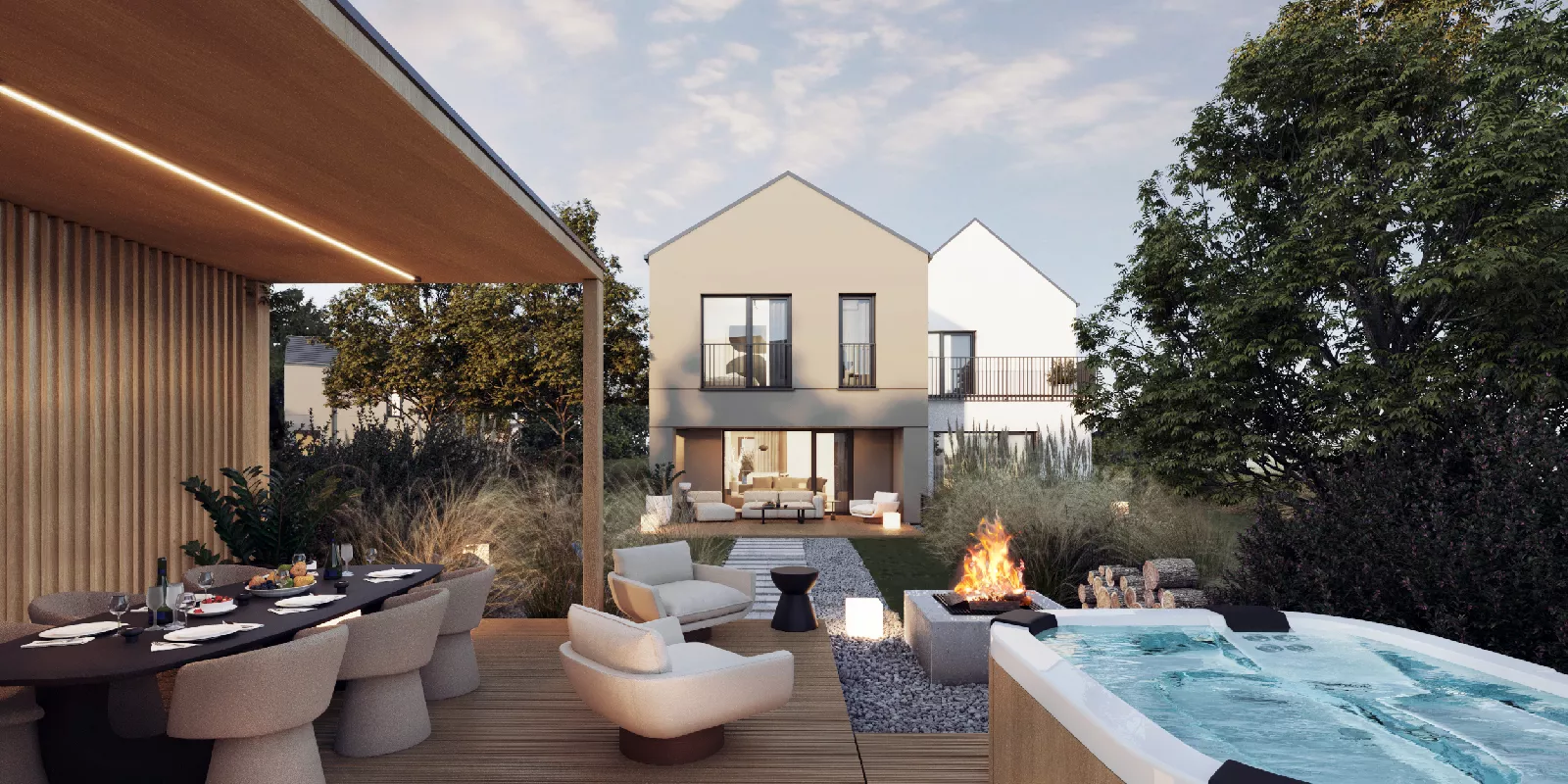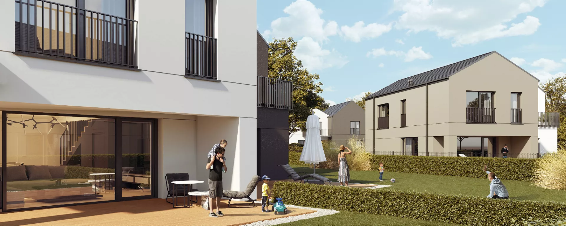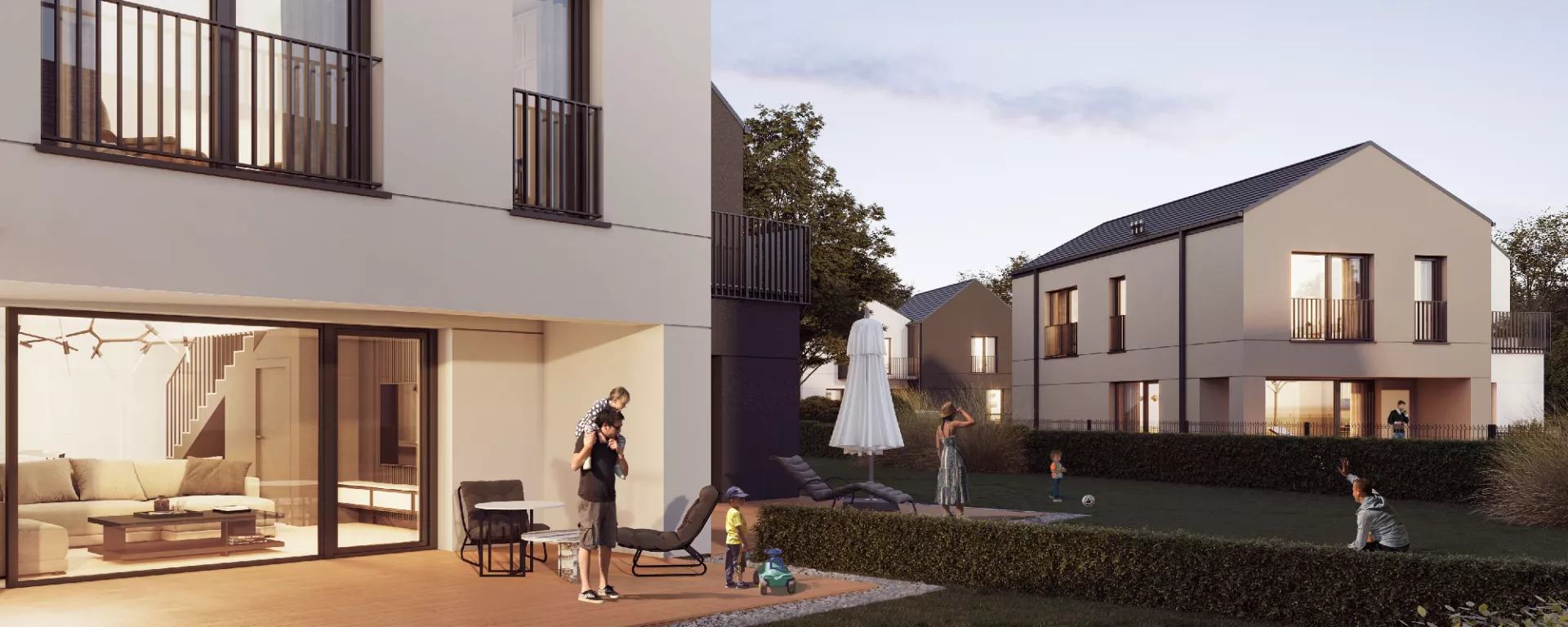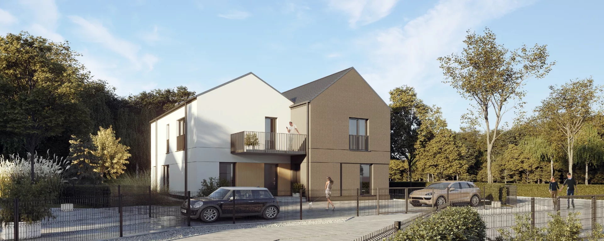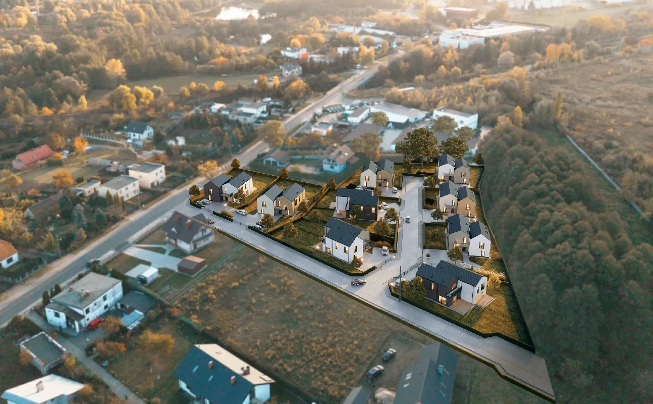 Udogodnienia: blisko komunikacji miejskiej, wokół inwestycji znajdują się tereny zielone, dogodny dostęp do infrastruktury miasta, spokojna okolica Przynależności: ogródek, miejsce postojowe Bezpieczeństwo: domofon, wideodomofon Wielkość Projektu: 9 domów dwulokalowych Garaże: Deweloper przewidział 2 miejsca postojowe dla mieszkańców każdego domu inwestycji. Komunikacja: autobus 220 m; stacja kolejowa 1,3 km; lotnisko 2 km Odległość od Centrum: 10 km