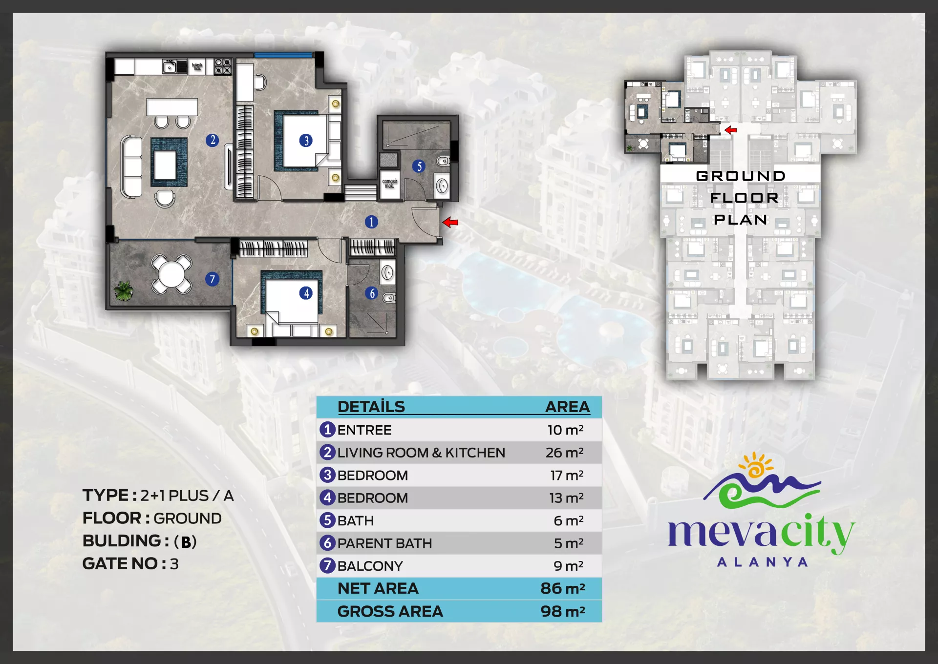 Udogodnienia: wysoki standard wykończenia, nowoczesna architektura, strefa relaksu - baseny, aquapark, sauna, strefa spa, plac zabaw dla dzieci, strefa fitness, sala kinowa; dużo zieleni wokół projektu - bliskość morza, blisko centrum miasta Przynależności: balkon, taras Bezpieczeństwo: całoodobowa ochrona Wielkość Projektu: 49 apartamentów Garaże: Na terenie inwestycji powstaną miejsca postojowe naziemne oraz w garażu Komunikacja: w pobliżu znajduje się rozwinięta sieć komunikacyjna Odległość od Centrum: 3 km