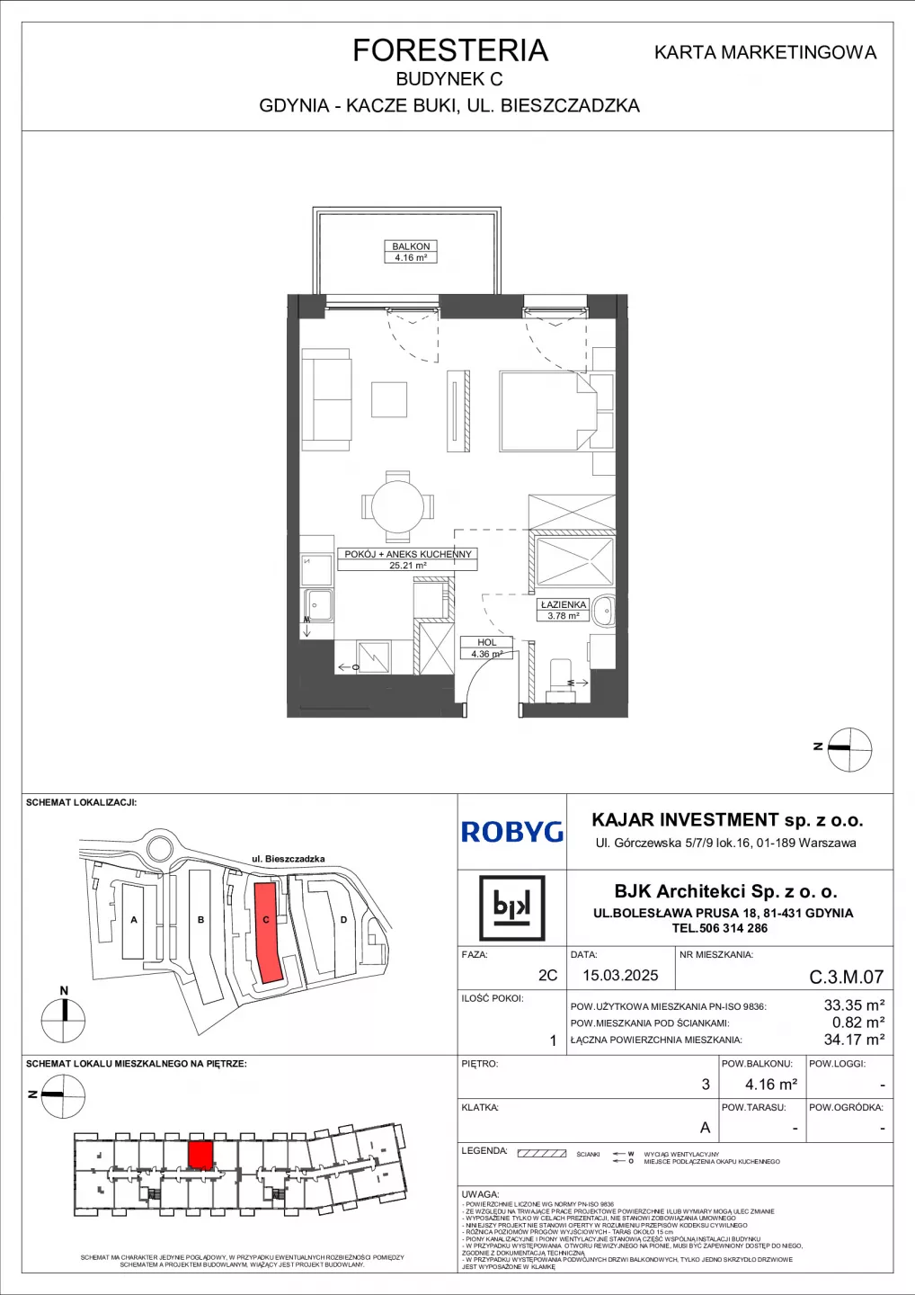 MAKIETY 3D: https: //3destate.app/robyg/ Udogodnienia: nowoczesne architektura, zielona przestrzeń, mała architektura, pakiet SmartHome, wielofunkcyjne osiedle, doskonałe skomunikowanie z centrum, spokojna okolica Przynależności: ogród, taras, balkon Bezpieczeństwo: drzwi antywłamaniowe, monitoring, wideodomofon Wielkość Projektu: 127 mieszkań Garaże: Na terenie inwestycji powstanie 50 miejsc garażowych i 53 miejsc naziemnych Komunikacja: w pobliżu znajduje się obwodnica, droga ekspresowa S6 i przystanki autobusowe Odległość od Centrum: 12,7 km