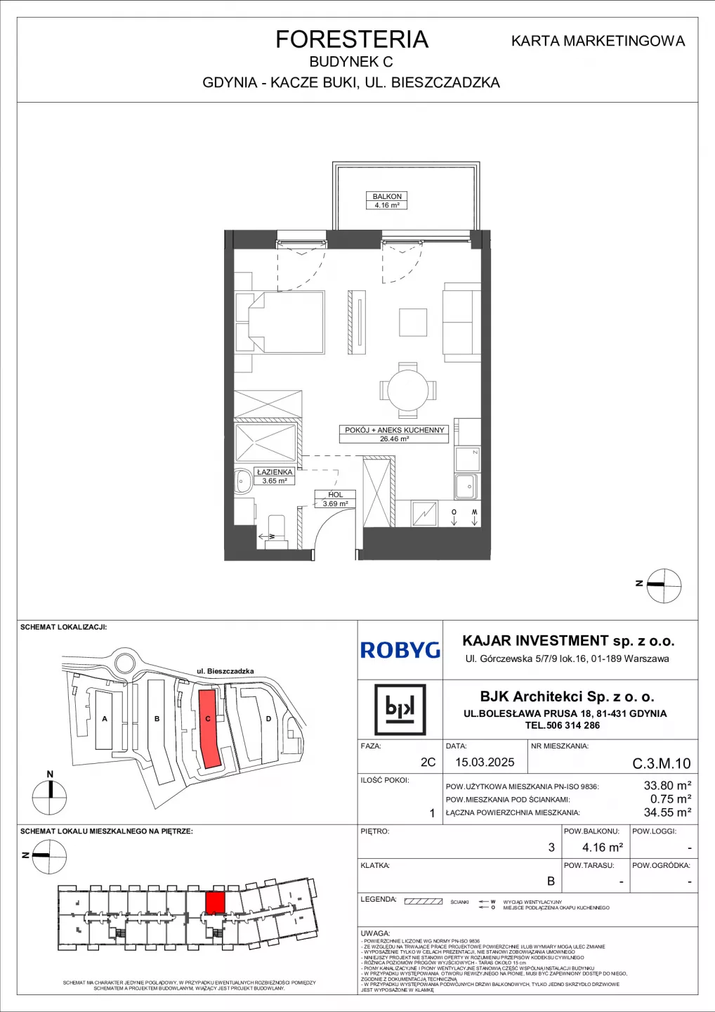 MAKIETY 3D: https: //3destate.app/robyg/ Udogodnienia: nowoczesne architektura, zielona przestrzeń, mała architektura, pakiet SmartHome, wielofunkcyjne osiedle, doskonałe skomunikowanie z centrum, spokojna okolica Przynależności: ogród, taras, balkon Bezpieczeństwo: drzwi antywłamaniowe, monitoring, wideodomofon Wielkość Projektu: 127 mieszkań Garaże: Na terenie inwestycji powstanie 50 miejsc garażowych i 53 miejsc naziemnych Komunikacja: w pobliżu znajduje się obwodnica, droga ekspresowa S6 i przystanki autobusowe Odległość od Centrum: 12,7 km
