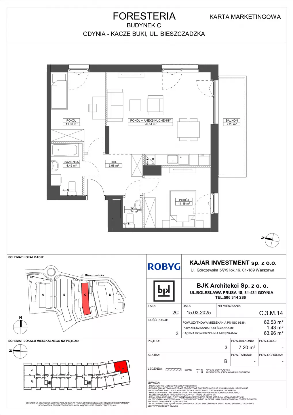 MAKIETY 3D: https: //3destate.app/robyg/ Udogodnienia: nowoczesne architektura, zielona przestrzeń, mała architektura, pakiet SmartHome, wielofunkcyjne osiedle, doskonałe skomunikowanie z centrum, spokojna okolica Przynależności: ogród, taras, balkon Bezpieczeństwo: drzwi antywłamaniowe, monitoring, wideodomofon Wielkość Projektu: 127 mieszkań Garaże: Na terenie inwestycji powstanie 50 miejsc garażowych i 53 miejsc naziemnych Komunikacja: w pobliżu znajduje się obwodnica, droga ekspresowa S6 i przystanki autobusowe Odległość od Centrum: 12,7 km