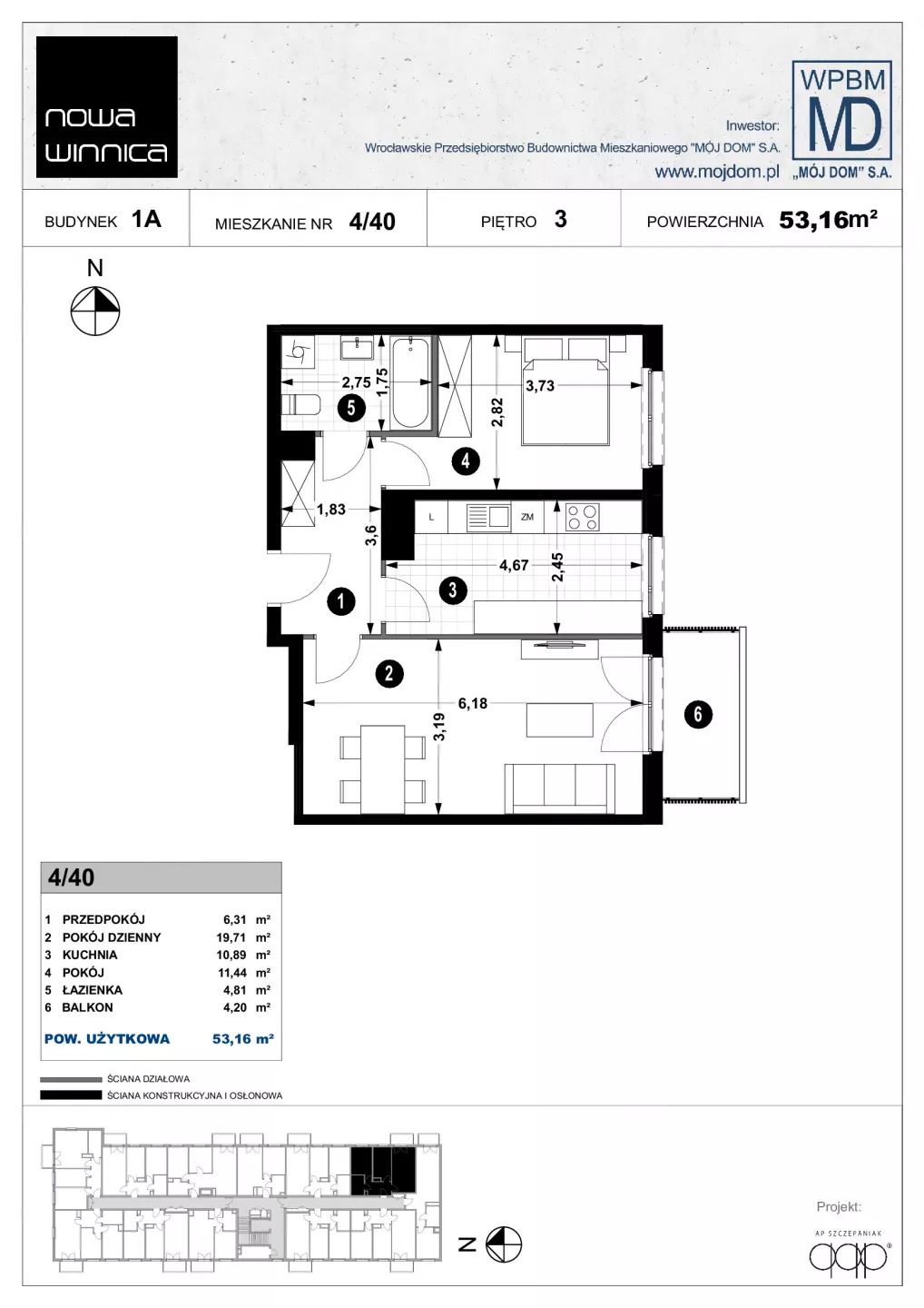 Udogodnienia: W pobliżu inwestycji znajdują się tereny zielone, plac zabaw, obiekty sportowe, stojaki na rowery. Przynależności: Każde mieszkanie posiada balkon lub ogródek. Bezpieczeństwo: Domofon. Wielkość Projektu: Inwestycja posiada 52 mieszkań. Garaże: W inwestycji będą dostępne miejsca postojowe. Komunikacja: 1,7km stacja PKP Odległość od Centrum: 28km.