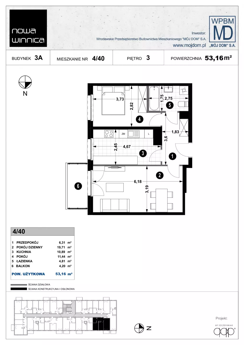 Udogodnienia: W pobliżu inwestycji znajdują się tereny zielone, plac zabaw, obiekty sportowe, stojaki na rowery. Przynależności: Każde mieszkanie posiada balkon lub ogródek. Bezpieczeństwo: Domofon. Wielkość Projektu: Inwestycja posiada 52 mieszkań. Garaże: W inwestycji będą dostępne miejsca postojowe. Komunikacja: 1,7km stacja PKP Odległość od Centrum: 28km.