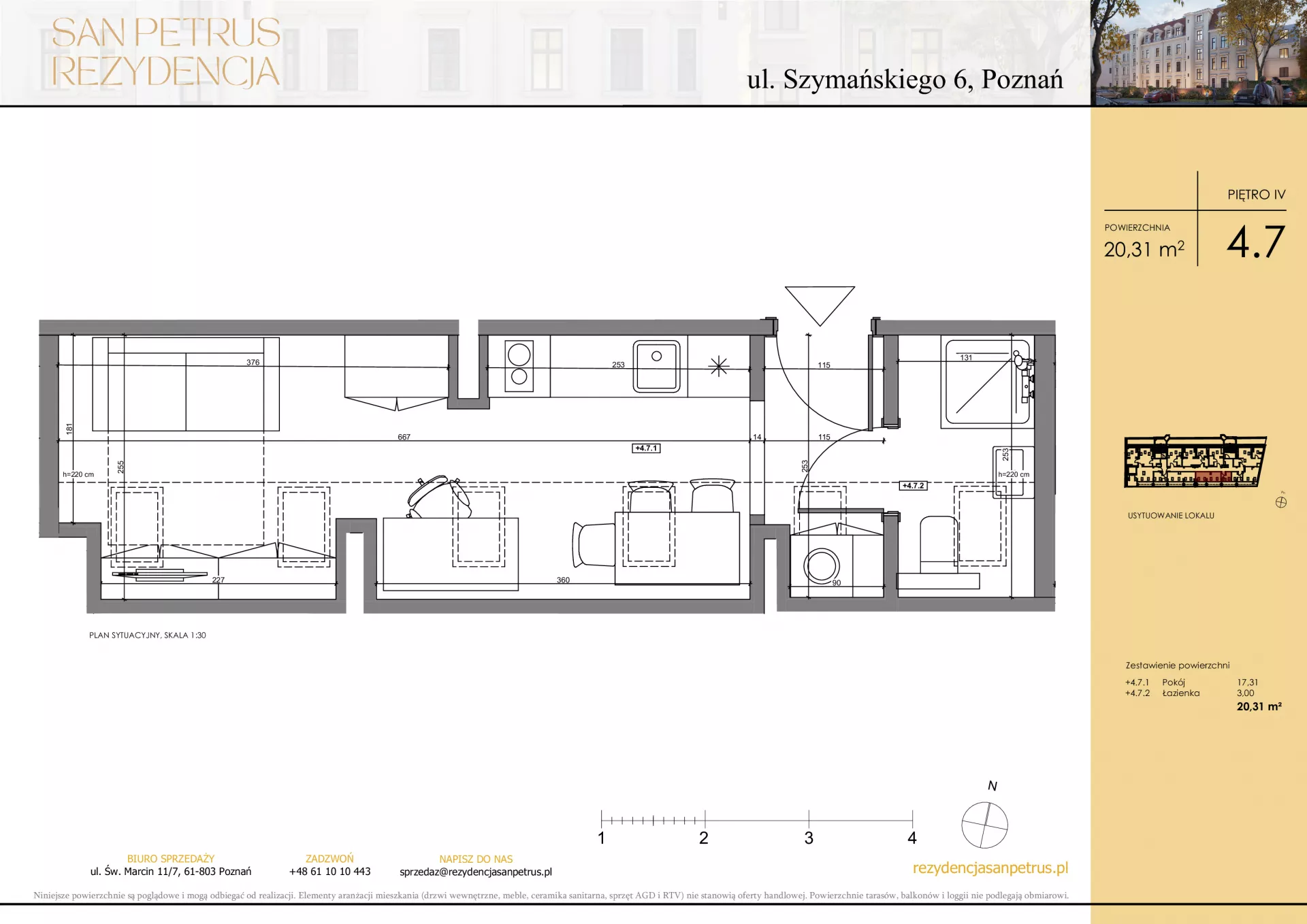 Udogodnienia: nowoczesne apartamenty, eleganckie części wspólne, cicha winda, pakiet pod klucz, architektura w stylu klasycystycznym, sauna, siłownia, rowerownia, prestiżowa lokalizacja, łatwy dostęp do miejskich udogodnień Bezpieczeństwo: teren ogrodzony Wielkość Projektu: 78 lokali inwestycyjnych Garaże: Na terenie inwestycji będą dostępne miesca postojowe naziemne i garażowe Komunikacja: W pobliżu inwestycji znajdują się przystanki autobusowe i tramwajowe oraz stacja kolejowa Odległość od Centrum: Inwestycja znajduje się w centrum miasta