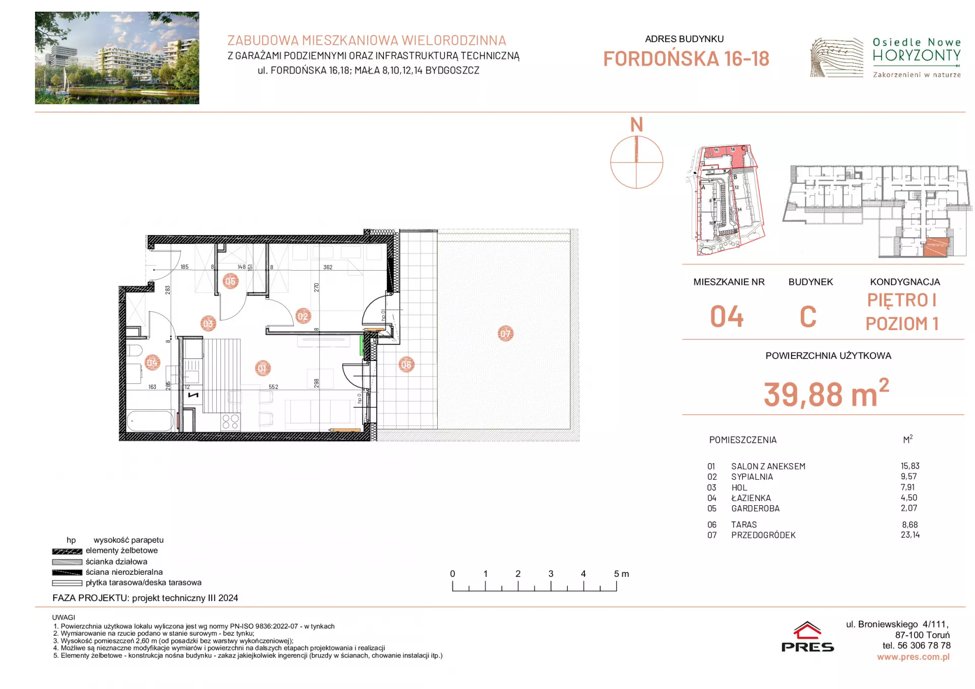 Udogodnienia: Nowe Horyzonty to innowacyjne rozwiązania m.in stacja zmiękczania wody, fotowoltaika na dachach zasilająca części wspólne, ekologiczne i automatyczne wykorzystanie wody deszczowej do podlewania, ograniczenie ruchu samochodowego na terenie osiedla (ok. 90% samochodów w halach garażowych podziemnych), stanowisko zewnętrzne do ładowania samochodów elektrycznych oraz możliwość doprowadzenia do każdego stanowiska instalacji do ładowania samochodów. Biedronka po drugiej stronie ulicy 207m, szkoła podstawowa, żłobek, przedszkole, park przy Balatonie, Fabryka Tańca.. Planowane prywatne przedszkole na terenie osiedla. Wyróżnik inwestycji: Lokalizacja blisko zieleni wraz z bulwarem tuż przy rzece Brdzie. Dobra okazja inwestycyjna pod najem długo-, jak i krótkoterminowy. Przynależności: Wózkownie, komórki i schowki. Balkon w każdym mieszkaniu. Tarasy i ogródki. Siłownia na świeżym powietrzu, tężnia solankowa. Docelowo ma być boisko Orlik (koszykówka, piłka nożna).Altany wraz z grillem. Górka saneczkowa. Zielony tunel. Naturalny plac zabaw. Bezpieczeństwo: Drzwi antywłamaniowe o podwyższonej izolacji akustycznej. Wideodomofony, monitoring zewnętrzny i hali garażowej.. Wielkość Projektu: 3 budynki wielorodzinne 7-piętrowe. I etap 149 mieszkań. Komórki lokatorskie. Garaże: Na terenie inwestycji powstaną 32 naziemne i 78 podziemne miejsca postojowe. Komunikacja: W pobliżu projektu znajdują się bardzo blisko przystanki autobusowe i tramwajowe. Dworzec PKS 4km, PKP Bydgoszcz Główna 5,2km Odległość od Centrum: 3,4km (ok. 6min samochodem). Szczegóły: Wysokość pomieszczeń 2,65m. Standard deweloperski.