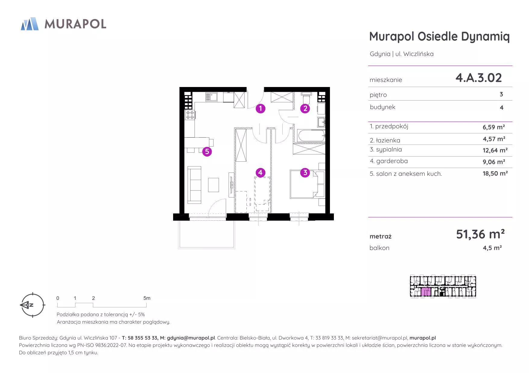 Udogodnienia: nowoczesna architektura, wysoki standard wykończenia, winda, stacja ładowania samochodów elektrycznych, pakiet antysmogowy, smart home, komórki lokatorskie, strefa rekreacyjna z placem zabaw, rowerownie, lokale usługowe na parterze, tereny zielone - Trójmiejski Park Krajobrazowy i Leśny Ogród Botaniczny Marszewo, blisko komunikacji miejskiej i centrum miasta; w pobliżu znajdują się siłownia, klub fitness, Bular Nadmorski, molo i klif w Orłowie, galeria handlowa Riviera oraz centra handlowe Witawa i Parkova Przynależności: balkon, taras z ogródkiem Bezpieczeństwo: drzwi antywłamaniowe, domofon, teren ogrodzony Wielkość Projektu: 228 mieszkań Garaże: Na terenie inwestycji powstaną miejsca postojowe naziemne i podziemne Komunikacja: obok inwestycji znajdują się przystanki autbusowe Odległość od Centrum: 10 km