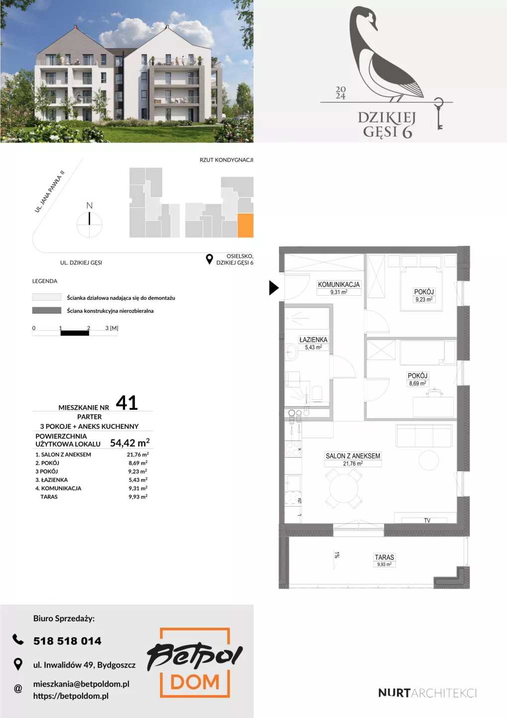 Udogodnienia: Nowoczesny budynek. Tereny zielone, blisko centrum i komunikacji miejskiej, w pobliżu znajdują się sklepy - Galeria Osielsko, Biedronka, Polo, banki - BS Bydgoszcz oraz Santander, szkoły- w Osielsku (z basenem), w Niemczu, żłobki i przedszkola, restauracje, blisko do wjazdu na drogę S5, w zasięgu Bolta i Ubera, punkty usługowe, cicha i spokojna okolica Przynależności: Taras (lokale na parterze), rowerownia, sala fitness (ok. 26k.kw.) Bezpieczeństwo: Drzwi antywłamaniowe kl. minimum RC2, wideodomofon, alarm, monitoring Wielkość Projektu: 4 kondygnacje, 3 klatki schodowe, 3 windy 61 mieszkania, komórki lokatorskie zlokalizowane na piętrach i półpiętrach, Garaże: Na terenie inwestycji przewidziano 37 podziemne miejsca postojowe w hali garażowej oraz 24 naziemne miejsca postojowe. Komunikacja: W pobliżu inwestycji znajduje się rozbudowana sieć autobusowa - najbliższy przystanek znajduje się w odległości 190 m od inwestycji Odległość od Centrum: 9,5 km Szczegóły: Cichobieżna winda, instalacja fotowoltaiczna, podgrzewany wjazd do hali garażowej, wysokość pomieszczeń 2.65m; Ściany – tynk cementowo – wapienny/lub gipsowy, bez gładzi. UWAGA: Możliwość, cesji. Możliwość uzyskania zgody wspólnoty na nieuciążliwą działalność gospodarczą. Finansowanie 60% ze środków własnych Dewelopera, w 40% z wpłat od klientów.