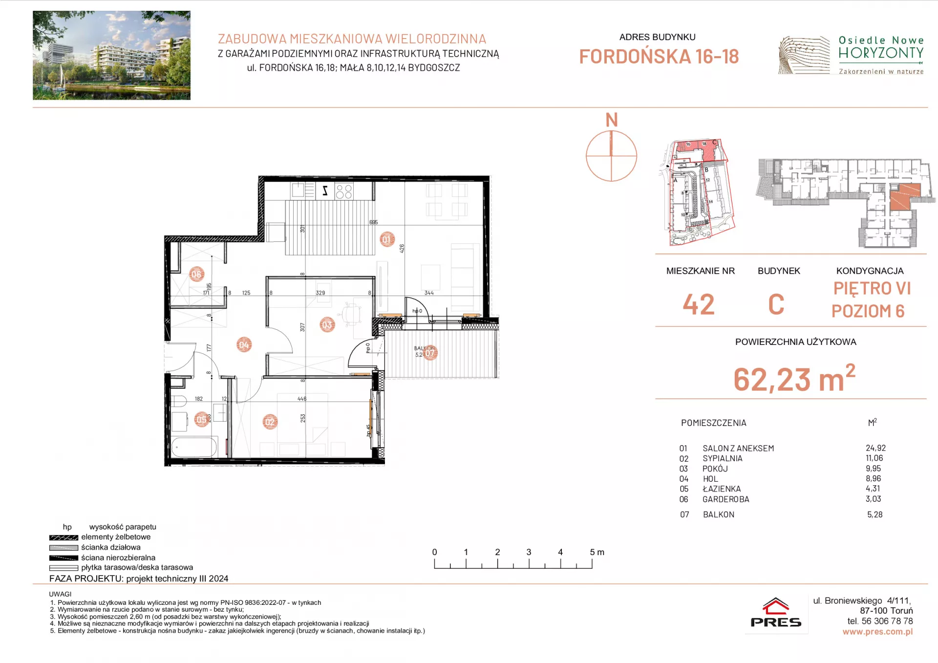 Udogodnienia: Nowe Horyzonty to innowacyjne rozwiązania m.in stacja zmiękczania wody, fotowoltaika na dachach zasilająca części wspólne, ekologiczne i automatyczne wykorzystanie wody deszczowej do podlewania, ograniczenie ruchu samochodowego na terenie osiedla (ok. 90% samochodów w halach garażowych podziemnych), stanowisko zewnętrzne do ładowania samochodów elektrycznych oraz możliwość doprowadzenia do każdego stanowiska instalacji do ładowania samochodów. Biedronka po drugiej stronie ulicy 207m, szkoła podstawowa, żłobek, przedszkole, park przy Balatonie, Fabryka Tańca.. Planowane prywatne przedszkole na terenie osiedla. Wyróżnik inwestycji: Lokalizacja blisko zieleni wraz z bulwarem tuż przy rzece Brdzie. Dobra okazja inwestycyjna pod najem długo-, jak i krótkoterminowy. Przynależności: Wózkownie, komórki i schowki. Balkon w każdym mieszkaniu. Tarasy i ogródki. Siłownia na świeżym powietrzu, tężnia solankowa. Docelowo ma być boisko Orlik (koszykówka, piłka nożna).Altany wraz z grillem. Górka saneczkowa. Zielony tunel. Naturalny plac zabaw. Bezpieczeństwo: Drzwi antywłamaniowe o podwyższonej izolacji akustycznej. Wideodomofony, monitoring zewnętrzny i hali garażowej.. Wielkość Projektu: 3 budynki wielorodzinne 7-piętrowe. I etap 149 mieszkań. Komórki lokatorskie. Garaże: Na terenie inwestycji powstaną 32 naziemne i 78 podziemne miejsca postojowe. Komunikacja: W pobliżu projektu znajdują się bardzo blisko przystanki autobusowe i tramwajowe. Dworzec PKS 4km, PKP Bydgoszcz Główna 5,2km Odległość od Centrum: 3,4km (ok. 6min samochodem). Szczegóły: Wysokość pomieszczeń 2,65m. Standard deweloperski.