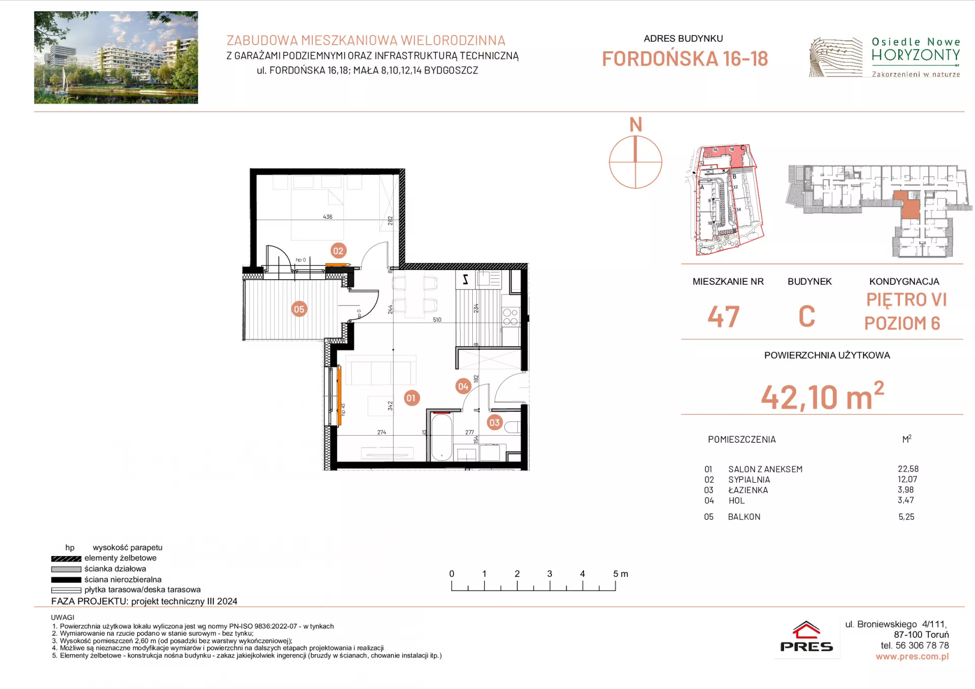 Udogodnienia: Nowe Horyzonty to innowacyjne rozwiązania m.in stacja zmiękczania wody, fotowoltaika na dachach zasilająca części wspólne, ekologiczne i automatyczne wykorzystanie wody deszczowej do podlewania, ograniczenie ruchu samochodowego na terenie osiedla (ok. 90% samochodów w halach garażowych podziemnych), stanowisko zewnętrzne do ładowania samochodów elektrycznych oraz możliwość doprowadzenia do każdego stanowiska instalacji do ładowania samochodów. Biedronka po drugiej stronie ulicy 207m, szkoła podstawowa, żłobek, przedszkole, park przy Balatonie, Fabryka Tańca.. Planowane prywatne przedszkole na terenie osiedla. Wyróżnik inwestycji: Lokalizacja blisko zieleni wraz z bulwarem tuż przy rzece Brdzie. Dobra okazja inwestycyjna pod najem długo-, jak i krótkoterminowy. Przynależności: Wózkownie, komórki i schowki. Balkon w każdym mieszkaniu. Tarasy i ogródki. Siłownia na świeżym powietrzu, tężnia solankowa. Docelowo ma być boisko Orlik (koszykówka, piłka nożna).Altany wraz z grillem. Górka saneczkowa. Zielony tunel. Naturalny plac zabaw. Bezpieczeństwo: Drzwi antywłamaniowe o podwyższonej izolacji akustycznej. Wideodomofony, monitoring zewnętrzny i hali garażowej.. Wielkość Projektu: 3 budynki wielorodzinne 7-piętrowe. I etap 149 mieszkań. Komórki lokatorskie. Garaże: Na terenie inwestycji powstaną 32 naziemne i 78 podziemne miejsca postojowe. Komunikacja: W pobliżu projektu znajdują się bardzo blisko przystanki autobusowe i tramwajowe. Dworzec PKS 4km, PKP Bydgoszcz Główna 5,2km Odległość od Centrum: 3,4km (ok. 6min samochodem). Szczegóły: Wysokość pomieszczeń 2,65m. Standard deweloperski.