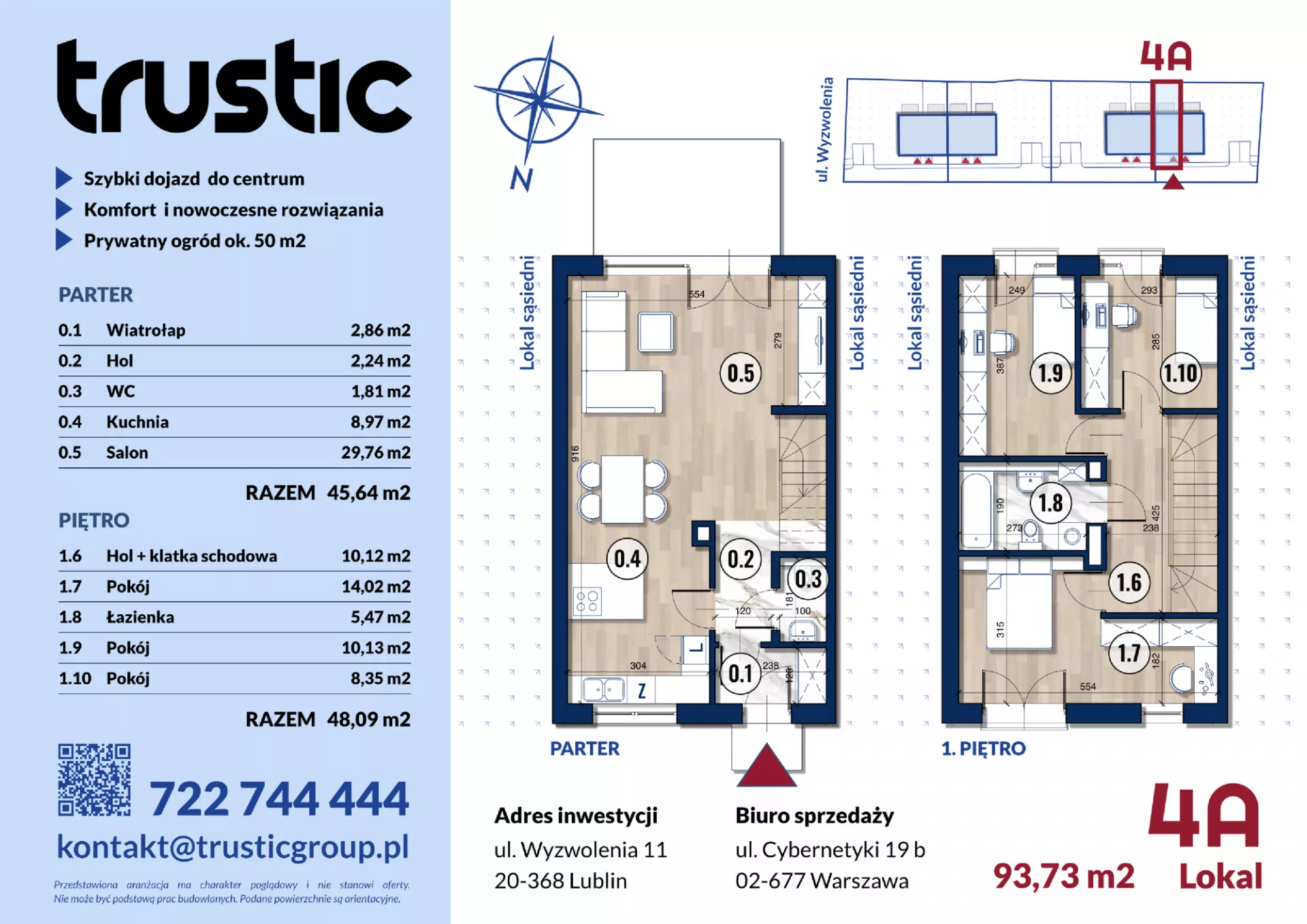 Nie musisz wyprowadzać się z miasta aby mieć dom! Każdy z 8 domów o kompaktowej powierzchni 93 m² to idealne połączenie funkcjonalności, nowoczesnego designu i komfortu. Przemyślane układy wnętrz zapewniają przestronność i maksymalne wykorzystanie powierzchni. Na parterze znajdziesz przestronny salon z aneksem kuchennym, który stanowi serce domu, toaletę oraz pomieszczenie gospodarcze. Piętro to trzy przytulne sypialnie i łazienka – wszystko, czego potrzebuje rodzina, by cieszyć się codziennym życiem. Twoja prywatna przestrzeń na świeżym powietrzu Każdy z domów posiada własny, intymny ogródek, który doskonale sprawdzi się jako miejsce relaksu, zabaw dla dzieci czy spotkań przy grillu. Osiedle znajduje się w spokojnej i zielonej okolicy, która oferuje ciszę i wytchnienie od miejskiego zgiełku, jednocześnie zapewniając szybki dostęp do centrum miasta. Bliskość szkół, przedszkoli, sklepów oraz terenów rekreacyjnych sprawia, że to idealne miejsce dla rodzin z dziećmi.