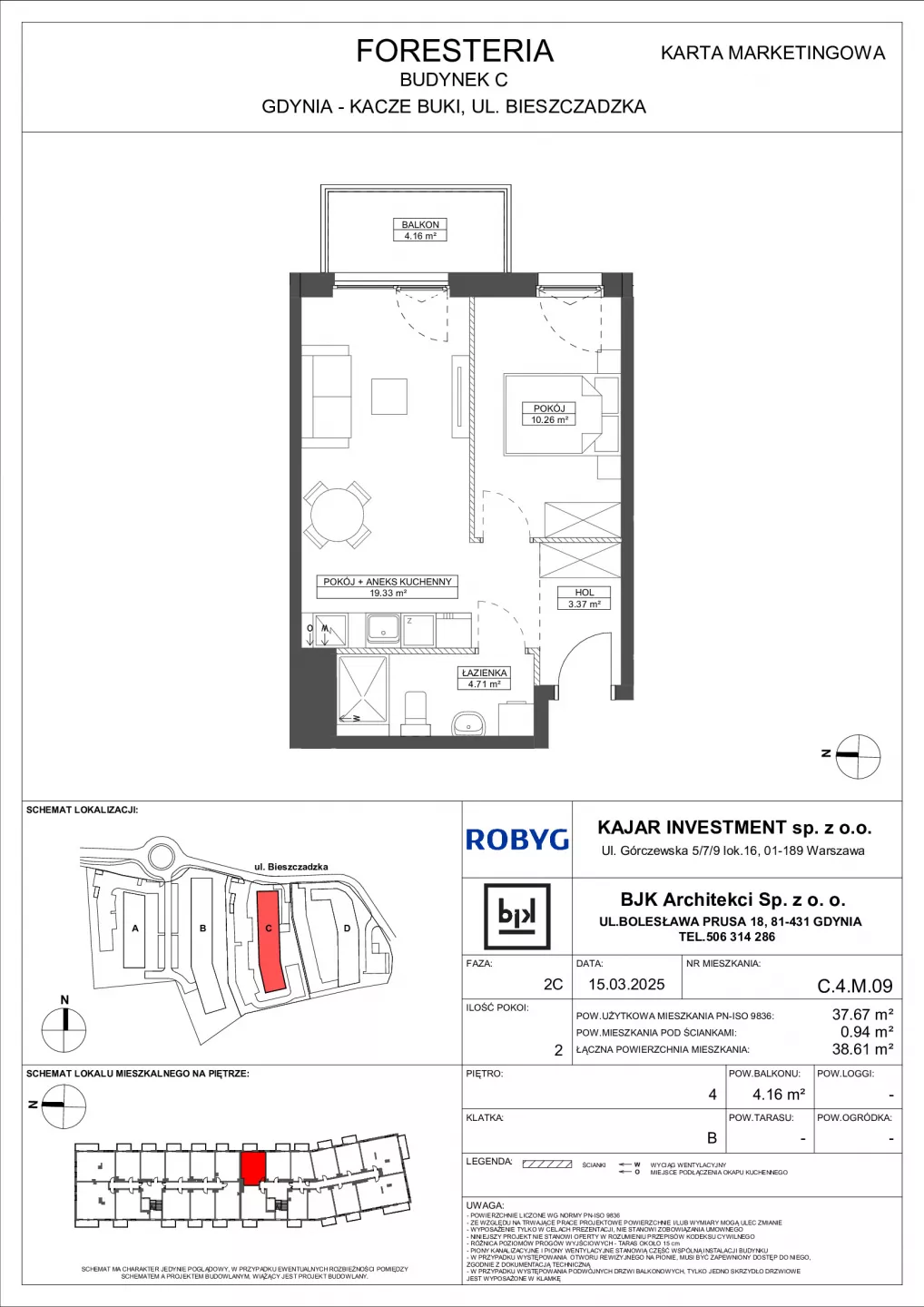 MAKIETY 3D: https: //3destate.app/robyg/ Udogodnienia: nowoczesne architektura, zielona przestrzeń, mała architektura, pakiet SmartHome, wielofunkcyjne osiedle, doskonałe skomunikowanie z centrum, spokojna okolica Przynależności: ogród, taras, balkon Bezpieczeństwo: drzwi antywłamaniowe, monitoring, wideodomofon Wielkość Projektu: 127 mieszkań Garaże: Na terenie inwestycji powstanie 50 miejsc garażowych i 53 miejsc naziemnych Komunikacja: w pobliżu znajduje się obwodnica, droga ekspresowa S6 i przystanki autobusowe Odległość od Centrum: 12,7 km