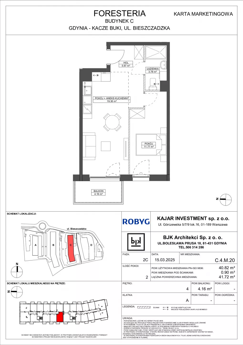 MAKIETY 3D: https: //3destate.app/robyg/ Udogodnienia: nowoczesne architektura, zielona przestrzeń, mała architektura, pakiet SmartHome, wielofunkcyjne osiedle, doskonałe skomunikowanie z centrum, spokojna okolica Przynależności: ogród, taras, balkon Bezpieczeństwo: drzwi antywłamaniowe, monitoring, wideodomofon Wielkość Projektu: 127 mieszkań Garaże: Na terenie inwestycji powstanie 50 miejsc garażowych i 53 miejsc naziemnych Komunikacja: w pobliżu znajduje się obwodnica, droga ekspresowa S6 i przystanki autobusowe Odległość od Centrum: 12,7 km
