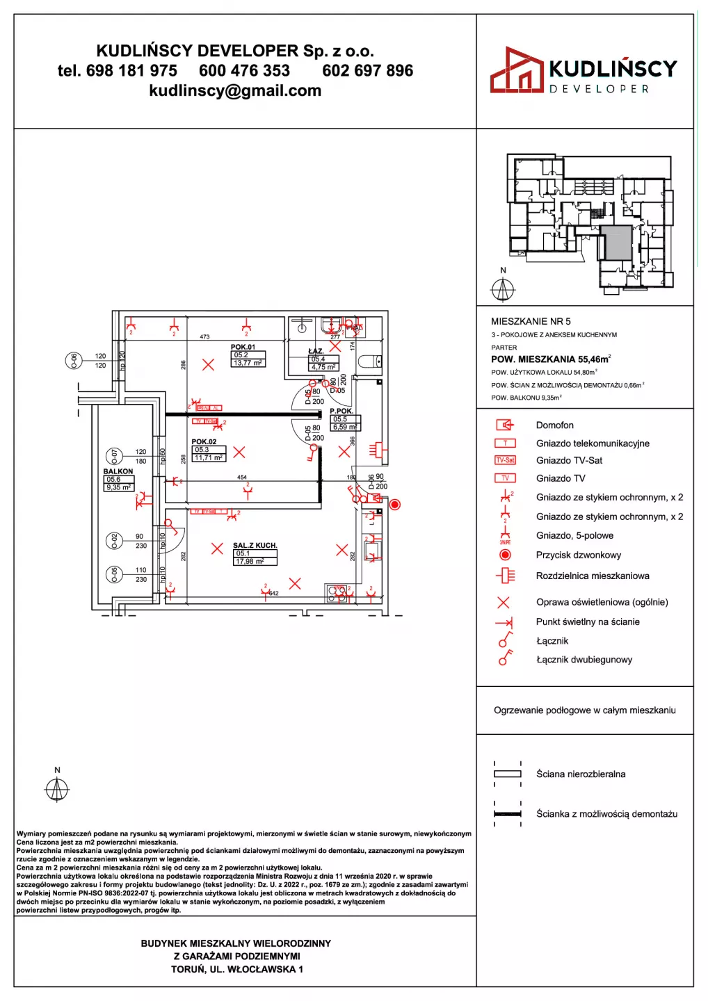 Udogodnienia: Centrum miasta - blisko na Stary Rynek. Przynależności: Każde mieszkanie posiada balkon. Każde posiada przewidzianą komórkę lokatorską. Bezpieczeństwo: Domofon, drzwi antywłamaniowe Wielkość Projektu: Inwestycja składa się z 1 budynku wielorodzinnego 4 piętrowego, 1 hala garażowa + 6 miejsc parkingowych naziemnych , 1 winda , w których mieści się 39 lokali mieszkalnych Garaże: 34 miejsc w hali garażowej (poziom -1 ). Komunikacja: Inwestycja zlokalizowana jest obok przystanków autobusowych, w niedalekiej odległości od PKP Dworzec Główny Toruń. Dworzec PKP Toruń Główna 760m, tramwaj 156m, autobus 230m Odległość od Centrum: centrum UWAGI: NIE KORZYSTAĆ Z WIZUALIZACJI DEWELOPERA - SKORZYSTAJ Z ZDJĘĆ WYKOŃCZONYCH LOKALI