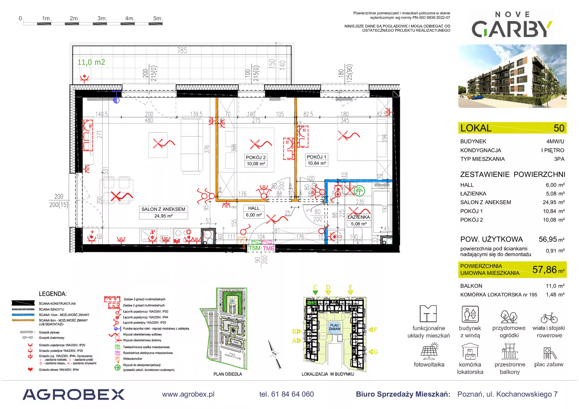 Udogodnienia: plac zabaw, wiaty i stojaki na rowery, dogodnie rozbudowana sieć transportu miejskiego; w okolicy bliskość terenów zielonych - Las przy Swarzędzu, Jezioro Swarzędzkie oraz punktów handlowo-usługowych Przynależności: prywatny ogródek, taras Bezpieczeństwo: domofon Wielkość Projektu: 143 mieszkań Garaże: Deweloper przewidział indywidualne i ogólnodostępne naziemne miejsca postojowe Komunikacja: przystanek autobusowy 2 minuty pieszo od inwestycji Odległość od Centrum: 14,3 km