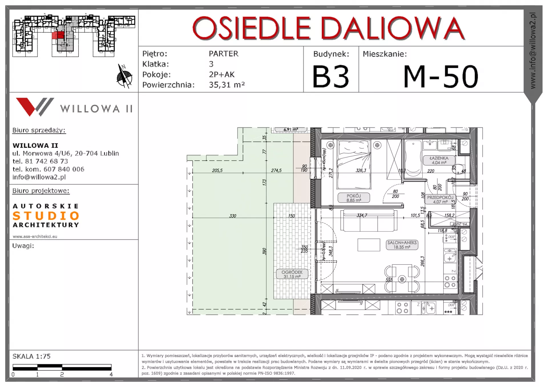 Udogodnienia: nowoczesna inwestycja, winda, wykorzystanie energooszczędnych materiałów, certyfikowany plac zabaw, miejsca postojowe na rowery, tereny zielone, blisko centrum miasta i komunikacji miejskiej; w pobliżu znajdują się sklepy wielometrażowe, galeria Olimp, przedszkole, szkoła podstawowa, punkty gastronomiczne i usługowe, służba zdrowia; spokojna okolica Przynależności: balkon, ogródek, komórka lokatorska Bezpieczeństwo: drzwi antywłamaniowe, wideodomofon Wielkość Projektu: 118 mieszkań Garaże: Na terenie inwestycji powstaje garaż podziemny oraz na ulicy powstaną dodatkowe miejsca postojowe Komunikacja: w pobliżu inwestycji znajduje się sieć przystanków autobusowych Odległość od Centrum: 4 km