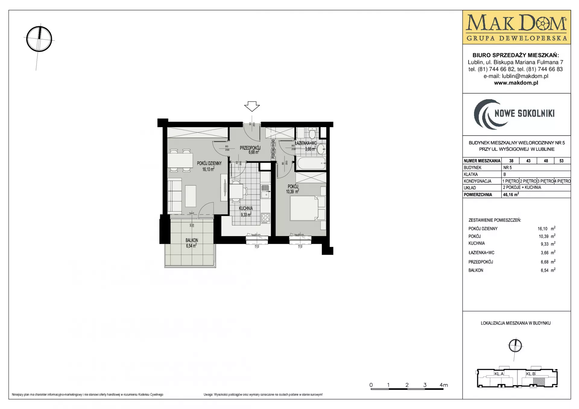 Udogodnienia: W pobliżu inwestycji znajdują się punkty usługowe, handlowe, rekreacyjno-wypoczynkowe jak również placówki edukacyjne. Przynależności: Mieszkania posiadają balkon, taras lub ogródek. Deweloper przewidział również komórki lokatorskie. Bezpieczeństwo: domofon, drzwi antywłamaniowe Wielkość Projektu: Całość projektu to obszar o niskiej zabudowie, który składa się z siedmiu budynków. W budynku nr 5 oferujemy 60 mieszkań. Garaże: W inwestycji będą miejsca postojowe podziemne i naziemne. Komunikacja: Autobus 450 metrów. Odległość od Centrum: 3 km.