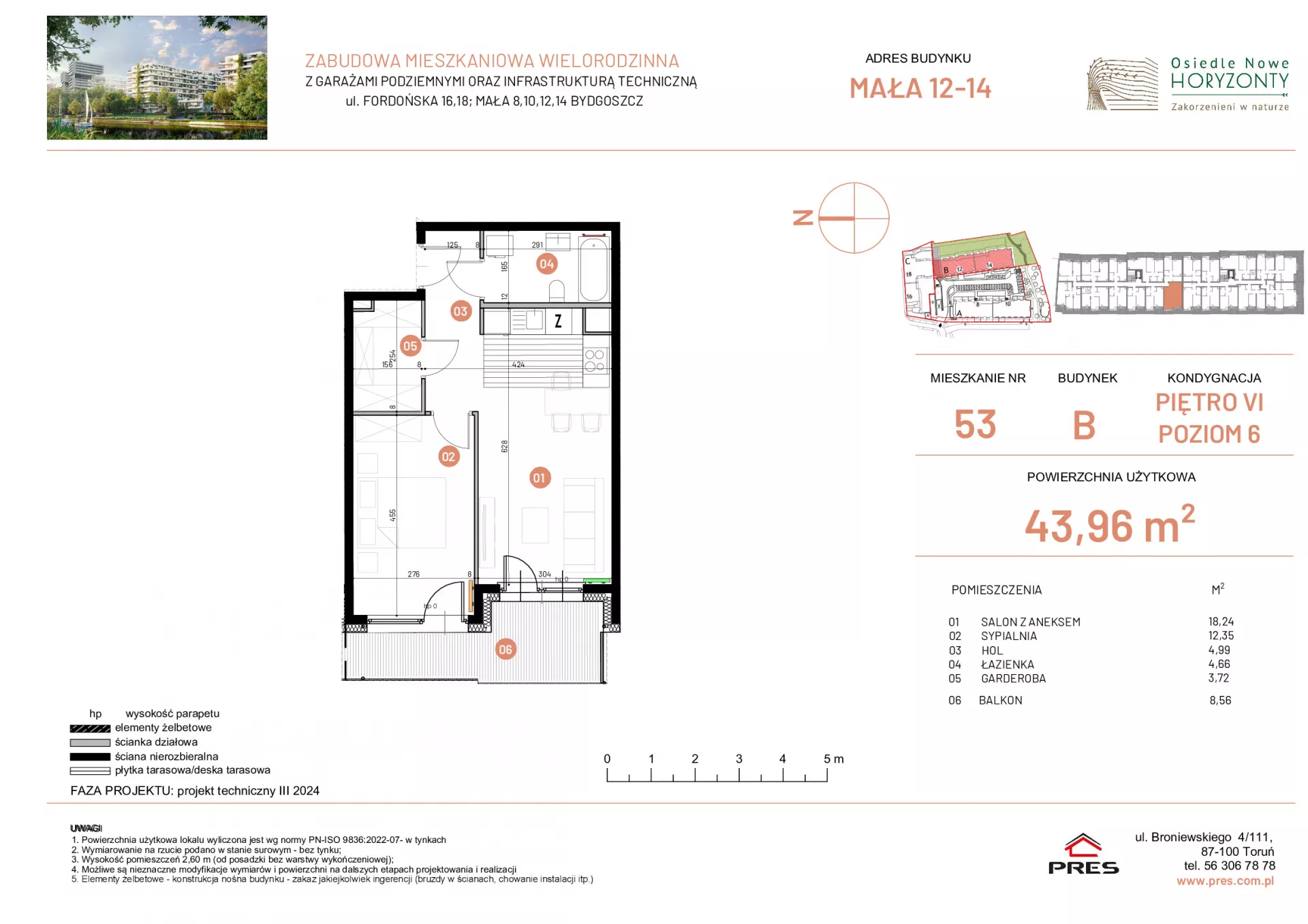 Udogodnienia: Nowe Horyzonty to innowacyjne rozwiązania m.in stacja zmiękczania wody, fotowoltaika na dachach zasilająca części wspólne, ekologiczne i automatyczne wykorzystanie wody deszczowej do podlewania, ograniczenie ruchu samochodowego na terenie osiedla (ok. 90% samochodów w halach garażowych podziemnych), stanowisko zewnętrzne do ładowania samochodów elektrycznych oraz możliwość doprowadzenia do każdego stanowiska instalacji do ładowania samochodów. Biedronka po drugiej stronie ulicy 207m, szkoła podstawowa, żłobek, przedszkole, park przy Balatonie, Fabryka Tańca.. Planowane prywatne przedszkole na terenie osiedla. Wyróżnik inwestycji: Lokalizacja blisko zieleni wraz z bulwarem tuż przy rzece Brdzie. Dobra okazja inwestycyjna pod najem długo-, jak i krótkoterminowy. Przynależności: Wózkownie, komórki i schowki. Balkon w każdym mieszkaniu. Tarasy i ogródki. Siłownia na świeżym powietrzu, tężnia solankowa. Docelowo ma być boisko Orlik (koszykówka, piłka nożna).Altany wraz z grillem. Górka saneczkowa. Zielony tunel. Naturalny plac zabaw. Bezpieczeństwo: Drzwi antywłamaniowe o podwyższonej izolacji akustycznej. Wideodomofony, monitoring zewnętrzny i hali garażowej.. Wielkość Projektu: 3 budynki wielorodzinne 7-piętrowe. I etap 149 mieszkań. Komórki lokatorskie. Garaże: Na terenie inwestycji powstaną 32 naziemne i 78 podziemne miejsca postojowe. Komunikacja: W pobliżu projektu znajdują się bardzo blisko przystanki autobusowe i tramwajowe. Dworzec PKS 4km, PKP Bydgoszcz Główna 5,2km Odległość od Centrum: 3,4km (ok. 6min samochodem). Szczegóły: Wysokość pomieszczeń 2,65m. Standard deweloperski.