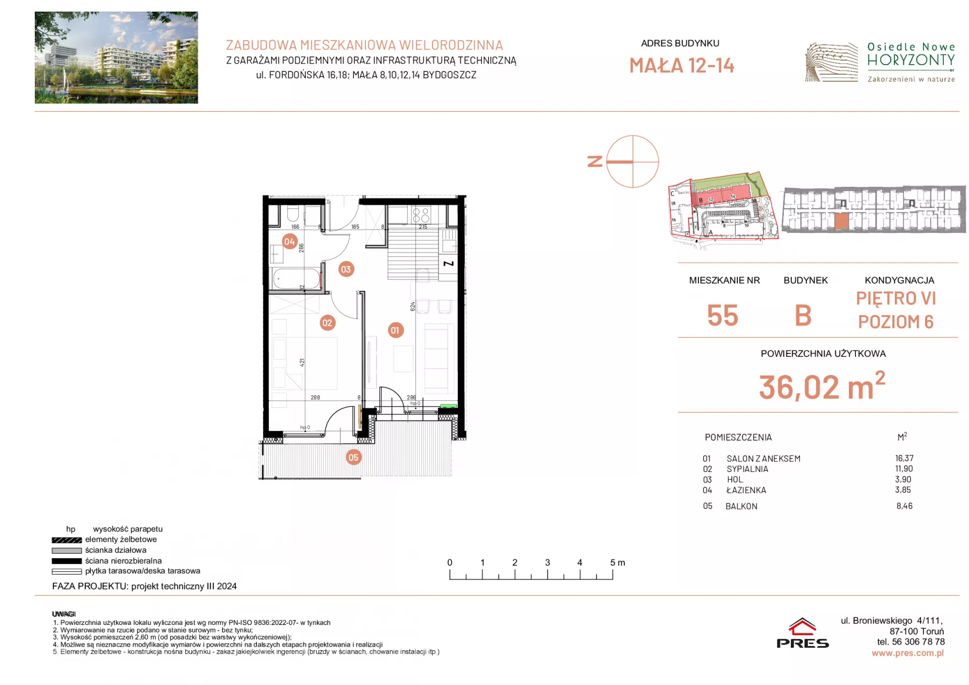 Udogodnienia: Nowe Horyzonty to innowacyjne rozwiązania m.in stacja zmiękczania wody, fotowoltaika na dachach zasilająca części wspólne, ekologiczne i automatyczne wykorzystanie wody deszczowej do podlewania, ograniczenie ruchu samochodowego na terenie osiedla (ok. 90% samochodów w halach garażowych podziemnych), stanowisko zewnętrzne do ładowania samochodów elektrycznych oraz możliwość doprowadzenia do każdego stanowiska instalacji do ładowania samochodów. Biedronka po drugiej stronie ulicy 207m, szkoła podstawowa, żłobek, przedszkole, park przy Balatonie, Fabryka Tańca.. Planowane prywatne przedszkole na terenie osiedla. Wyróżnik inwestycji: Lokalizacja blisko zieleni wraz z bulwarem tuż przy rzece Brdzie. Dobra okazja inwestycyjna pod najem długo-, jak i krótkoterminowy. Przynależności: Wózkownie, komórki i schowki. Balkon w każdym mieszkaniu. Tarasy i ogródki. Siłownia na świeżym powietrzu, tężnia solankowa. Docelowo ma być boisko Orlik (koszykówka, piłka nożna).Altany wraz z grillem. Górka saneczkowa. Zielony tunel. Naturalny plac zabaw. Bezpieczeństwo: Drzwi antywłamaniowe o podwyższonej izolacji akustycznej. Wideodomofony, monitoring zewnętrzny i hali garażowej.. Wielkość Projektu: 3 budynki wielorodzinne 7-piętrowe. I etap 149 mieszkań. Komórki lokatorskie. Garaże: Na terenie inwestycji powstaną 32 naziemne i 78 podziemne miejsca postojowe. Komunikacja: W pobliżu projektu znajdują się bardzo blisko przystanki autobusowe i tramwajowe. Dworzec PKS 4km, PKP Bydgoszcz Główna 5,2km Odległość od Centrum: 3,4km (ok. 6min samochodem). Szczegóły: Wysokość pomieszczeń 2,65m. Standard deweloperski.