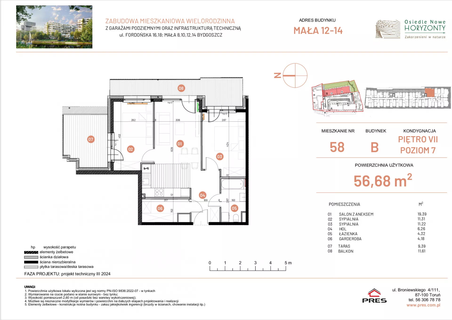 Udogodnienia: Nowe Horyzonty to innowacyjne rozwiązania m.in stacja zmiękczania wody, fotowoltaika na dachach zasilająca części wspólne, ekologiczne i automatyczne wykorzystanie wody deszczowej do podlewania, ograniczenie ruchu samochodowego na terenie osiedla (ok. 90% samochodów w halach garażowych podziemnych), stanowisko zewnętrzne do ładowania samochodów elektrycznych oraz możliwość doprowadzenia do każdego stanowiska instalacji do ładowania samochodów. Biedronka po drugiej stronie ulicy 207m, szkoła podstawowa, żłobek, przedszkole, park przy Balatonie, Fabryka Tańca.. Planowane prywatne przedszkole na terenie osiedla. Wyróżnik inwestycji: Lokalizacja blisko zieleni wraz z bulwarem tuż przy rzece Brdzie. Dobra okazja inwestycyjna pod najem długo-, jak i krótkoterminowy. Przynależności: Wózkownie, komórki i schowki. Balkon w każdym mieszkaniu. Tarasy i ogródki. Siłownia na świeżym powietrzu, tężnia solankowa. Docelowo ma być boisko Orlik (koszykówka, piłka nożna).Altany wraz z grillem. Górka saneczkowa. Zielony tunel. Naturalny plac zabaw. Bezpieczeństwo: Drzwi antywłamaniowe o podwyższonej izolacji akustycznej. Wideodomofony, monitoring zewnętrzny i hali garażowej.. Wielkość Projektu: 3 budynki wielorodzinne 7-piętrowe. I etap 149 mieszkań. Komórki lokatorskie. Garaże: Na terenie inwestycji powstaną 32 naziemne i 78 podziemne miejsca postojowe. Komunikacja: W pobliżu projektu znajdują się bardzo blisko przystanki autobusowe i tramwajowe. Dworzec PKS 4km, PKP Bydgoszcz Główna 5,2km Odległość od Centrum: 3,4km (ok. 6min samochodem). Szczegóły: Wysokość pomieszczeń 2,65m. Standard deweloperski.