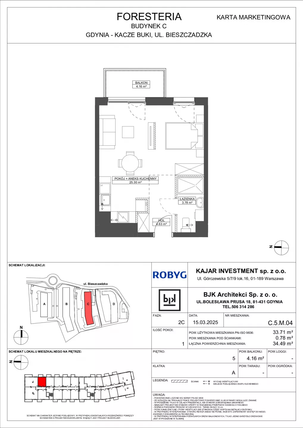 MAKIETY 3D: https: //3destate.app/robyg/ Udogodnienia: nowoczesne architektura, zielona przestrzeń, mała architektura, pakiet SmartHome, wielofunkcyjne osiedle, doskonałe skomunikowanie z centrum, spokojna okolica Przynależności: ogród, taras, balkon Bezpieczeństwo: drzwi antywłamaniowe, monitoring, wideodomofon Wielkość Projektu: 127 mieszkań Garaże: Na terenie inwestycji powstanie 50 miejsc garażowych i 53 miejsc naziemnych Komunikacja: w pobliżu znajduje się obwodnica, droga ekspresowa S6 i przystanki autobusowe Odległość od Centrum: 12,7 km