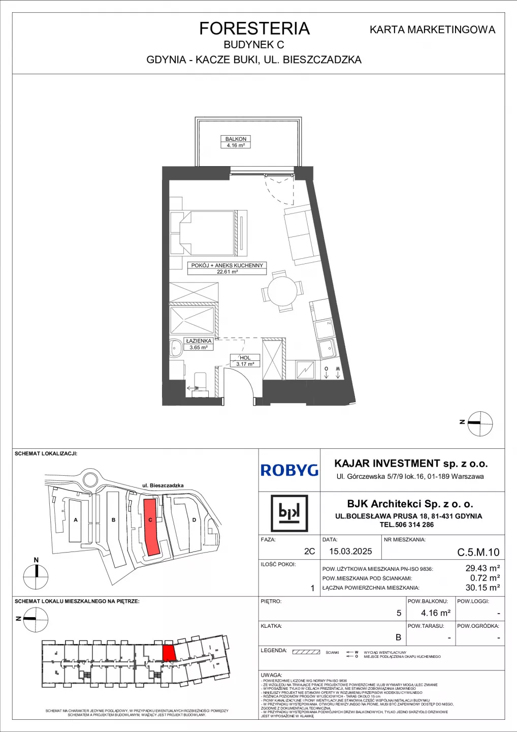 MAKIETY 3D: https: //3destate.app/robyg/ Udogodnienia: nowoczesne architektura, zielona przestrzeń, mała architektura, pakiet SmartHome, wielofunkcyjne osiedle, doskonałe skomunikowanie z centrum, spokojna okolica Przynależności: ogród, taras, balkon Bezpieczeństwo: drzwi antywłamaniowe, monitoring, wideodomofon Wielkość Projektu: 127 mieszkań Garaże: Na terenie inwestycji powstanie 50 miejsc garażowych i 53 miejsc naziemnych Komunikacja: w pobliżu znajduje się obwodnica, droga ekspresowa S6 i przystanki autobusowe Odległość od Centrum: 12,7 km