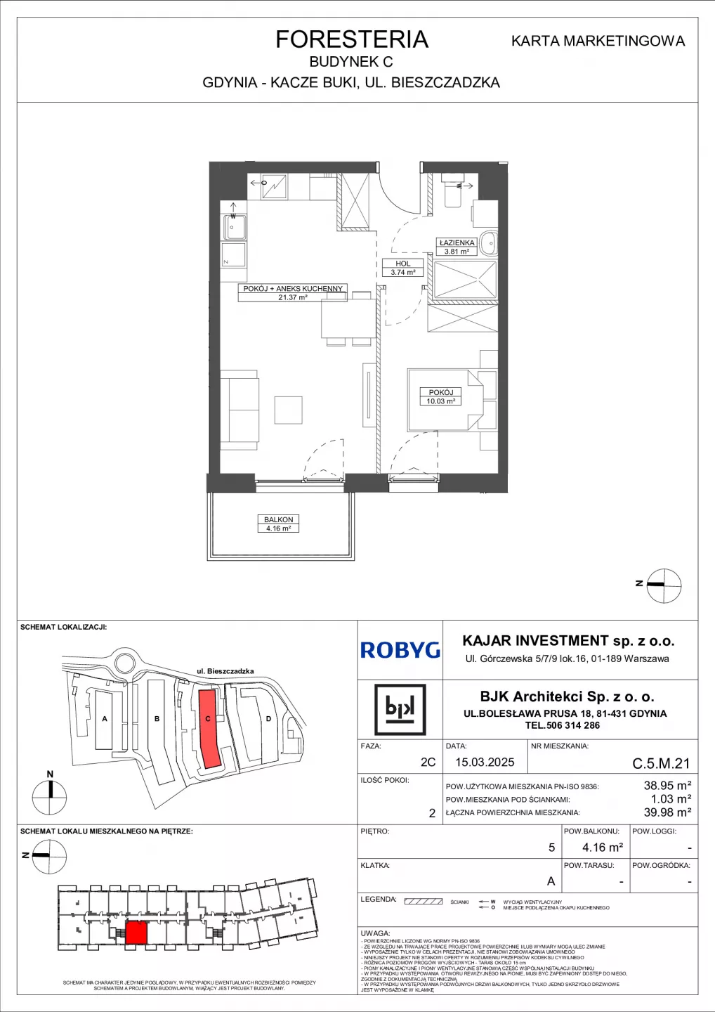 MAKIETY 3D: https: //3destate.app/robyg/ Udogodnienia: nowoczesne architektura, zielona przestrzeń, mała architektura, pakiet SmartHome, wielofunkcyjne osiedle, doskonałe skomunikowanie z centrum, spokojna okolica Przynależności: ogród, taras, balkon Bezpieczeństwo: drzwi antywłamaniowe, monitoring, wideodomofon Wielkość Projektu: 127 mieszkań Garaże: Na terenie inwestycji powstanie 50 miejsc garażowych i 53 miejsc naziemnych Komunikacja: w pobliżu znajduje się obwodnica, droga ekspresowa S6 i przystanki autobusowe Odległość od Centrum: 12,7 km