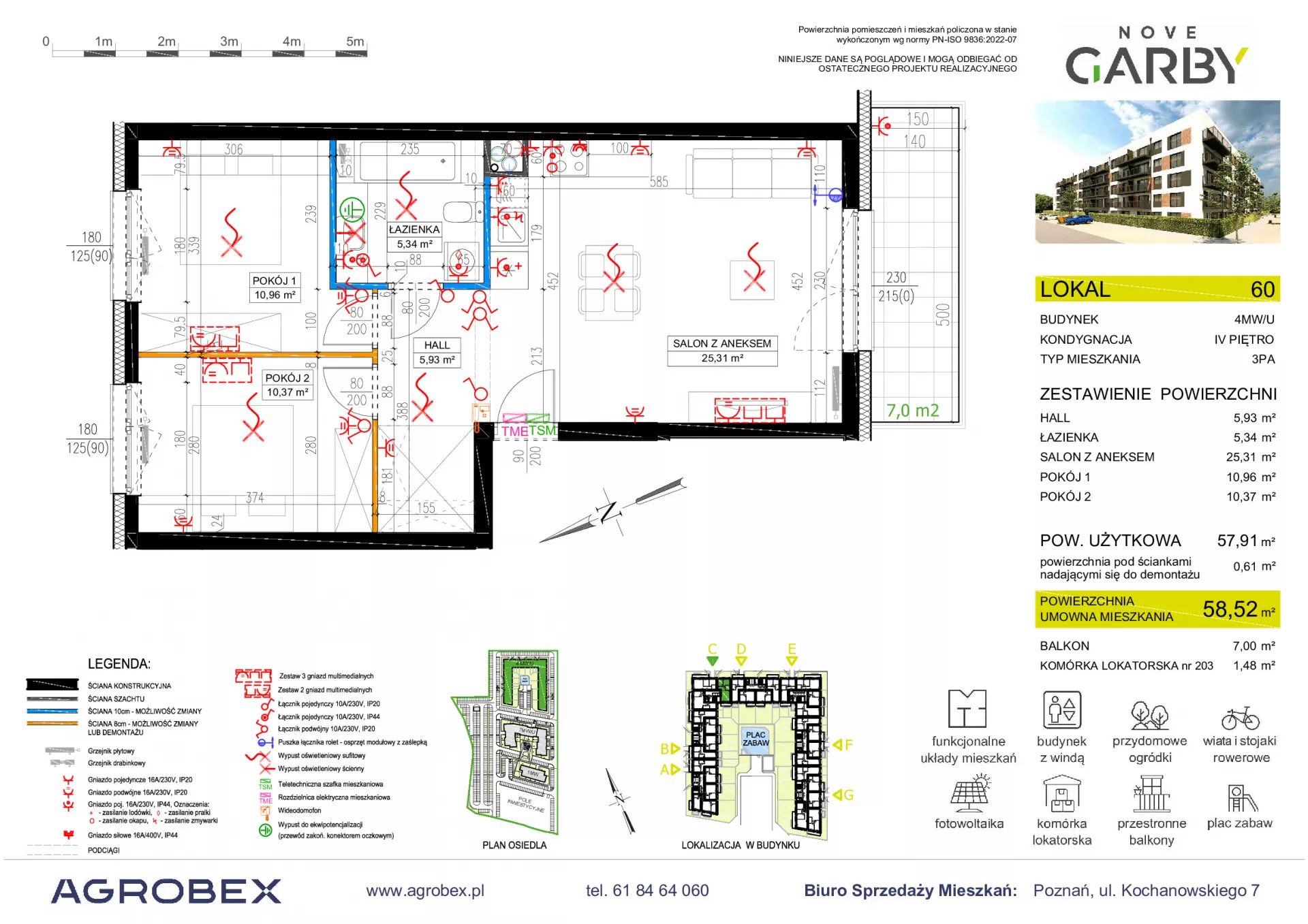 Udogodnienia: plac zabaw, wiaty i stojaki na rowery, dogodnie rozbudowana sieć transportu miejskiego; w okolicy bliskość terenów zielonych - Las przy Swarzędzu, Jezioro Swarzędzkie oraz punktów handlowo-usługowych Przynależności: prywatny ogródek, taras Bezpieczeństwo: domofon Wielkość Projektu: 143 mieszkań Garaże: Deweloper przewidział indywidualne i ogólnodostępne naziemne miejsca postojowe Komunikacja: przystanek autobusowy 2 minuty pieszo od inwestycji Odległość od Centrum: 14,3 km