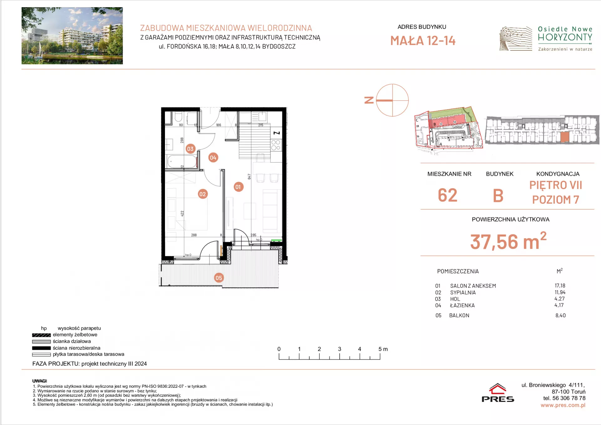Udogodnienia: Nowe Horyzonty to innowacyjne rozwiązania m.in stacja zmiękczania wody, fotowoltaika na dachach zasilająca części wspólne, ekologiczne i automatyczne wykorzystanie wody deszczowej do podlewania, ograniczenie ruchu samochodowego na terenie osiedla (ok. 90% samochodów w halach garażowych podziemnych), stanowisko zewnętrzne do ładowania samochodów elektrycznych oraz możliwość doprowadzenia do każdego stanowiska instalacji do ładowania samochodów. Biedronka po drugiej stronie ulicy 207m, szkoła podstawowa, żłobek, przedszkole, park przy Balatonie, Fabryka Tańca.. Planowane prywatne przedszkole na terenie osiedla. Wyróżnik inwestycji: Lokalizacja blisko zieleni wraz z bulwarem tuż przy rzece Brdzie. Dobra okazja inwestycyjna pod najem długo-, jak i krótkoterminowy. Przynależności: Wózkownie, komórki i schowki. Balkon w każdym mieszkaniu. Tarasy i ogródki. Siłownia na świeżym powietrzu, tężnia solankowa. Docelowo ma być boisko Orlik (koszykówka, piłka nożna).Altany wraz z grillem. Górka saneczkowa. Zielony tunel. Naturalny plac zabaw. Bezpieczeństwo: Drzwi antywłamaniowe o podwyższonej izolacji akustycznej. Wideodomofony, monitoring zewnętrzny i hali garażowej.. Wielkość Projektu: 3 budynki wielorodzinne 7-piętrowe. I etap 149 mieszkań. Komórki lokatorskie. Garaże: Na terenie inwestycji powstaną 32 naziemne i 78 podziemne miejsca postojowe. Komunikacja: W pobliżu projektu znajdują się bardzo blisko przystanki autobusowe i tramwajowe. Dworzec PKS 4km, PKP Bydgoszcz Główna 5,2km Odległość od Centrum: 3,4km (ok. 6min samochodem). Szczegóły: Wysokość pomieszczeń 2,65m. Standard deweloperski.