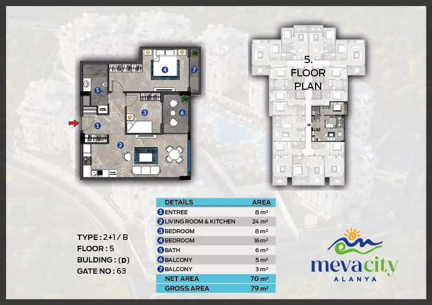 Udogodnienia: wysoki standard wykończenia, nowoczesna architektura, strefa relaksu - baseny, aquapark, sauna, strefa spa, plac zabaw dla dzieci, strefa fitness, sala kinowa; dużo zieleni wokół projektu - bliskość morza, blisko centrum miasta Przynależności: balkon, taras Bezpieczeństwo: całoodobowa ochrona Wielkość Projektu: 49 apartamentów Garaże: Na terenie inwestycji powstaną miejsca postojowe naziemne oraz w garażu Komunikacja: w pobliżu znajduje się rozwinięta sieć komunikacyjna Odległość od Centrum: 3 km