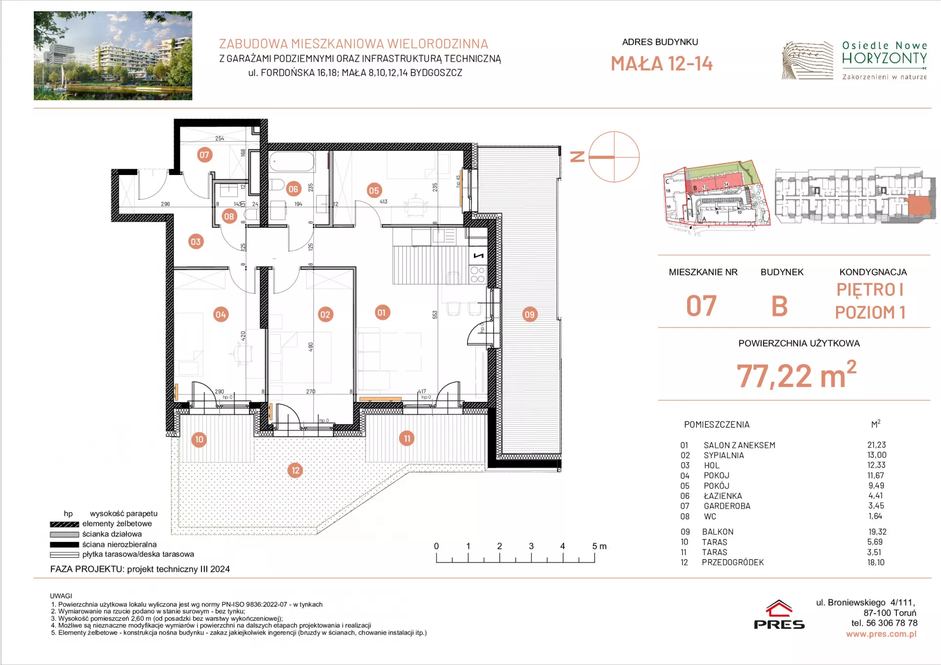 Udogodnienia: Nowe Horyzonty to innowacyjne rozwiązania m.in stacja zmiękczania wody, fotowoltaika na dachach zasilająca części wspólne, ekologiczne i automatyczne wykorzystanie wody deszczowej do podlewania, ograniczenie ruchu samochodowego na terenie osiedla (ok. 90% samochodów w halach garażowych podziemnych), stanowisko zewnętrzne do ładowania samochodów elektrycznych oraz możliwość doprowadzenia do każdego stanowiska instalacji do ładowania samochodów. Biedronka po drugiej stronie ulicy 207m, szkoła podstawowa, żłobek, przedszkole, park przy Balatonie, Fabryka Tańca.. Planowane prywatne przedszkole na terenie osiedla. Wyróżnik inwestycji: Lokalizacja blisko zieleni wraz z bulwarem tuż przy rzece Brdzie. Dobra okazja inwestycyjna pod najem długo-, jak i krótkoterminowy. Przynależności: Wózkownie, komórki i schowki. Balkon w każdym mieszkaniu. Tarasy i ogródki. Siłownia na świeżym powietrzu, tężnia solankowa. Docelowo ma być boisko Orlik (koszykówka, piłka nożna).Altany wraz z grillem. Górka saneczkowa. Zielony tunel. Naturalny plac zabaw. Bezpieczeństwo: Drzwi antywłamaniowe o podwyższonej izolacji akustycznej. Wideodomofony, monitoring zewnętrzny i hali garażowej.. Wielkość Projektu: 3 budynki wielorodzinne 7-piętrowe. I etap 149 mieszkań. Komórki lokatorskie. Garaże: Na terenie inwestycji powstaną 32 naziemne i 78 podziemne miejsca postojowe. Komunikacja: W pobliżu projektu znajdują się bardzo blisko przystanki autobusowe i tramwajowe. Dworzec PKS 4km, PKP Bydgoszcz Główna 5,2km Odległość od Centrum: 3,4km (ok. 6min samochodem). Szczegóły: Wysokość pomieszczeń 2,65m. Standard deweloperski.
