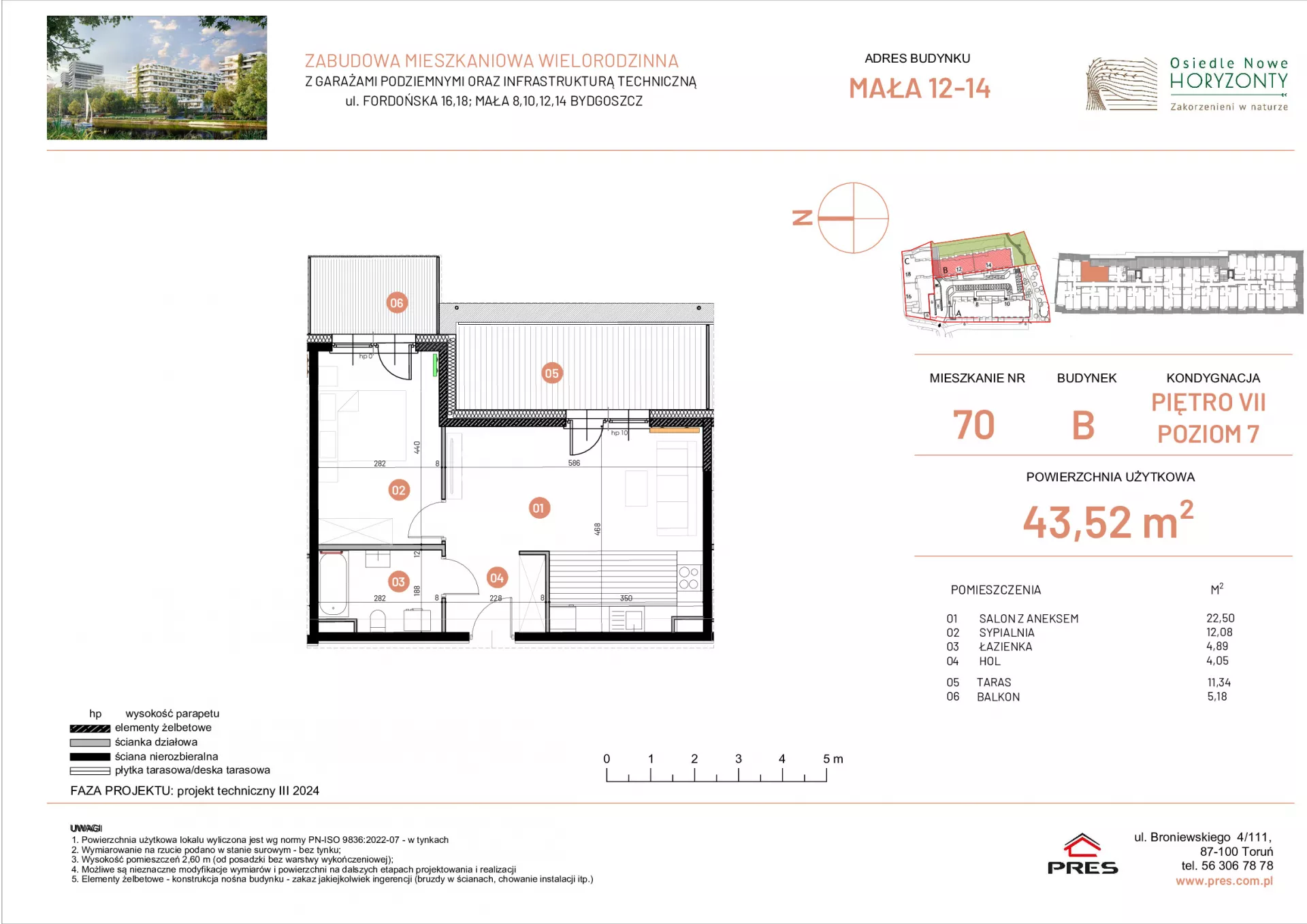 Udogodnienia: Nowe Horyzonty to innowacyjne rozwiązania m.in stacja zmiękczania wody, fotowoltaika na dachach zasilająca części wspólne, ekologiczne i automatyczne wykorzystanie wody deszczowej do podlewania, ograniczenie ruchu samochodowego na terenie osiedla (ok. 90% samochodów w halach garażowych podziemnych), stanowisko zewnętrzne do ładowania samochodów elektrycznych oraz możliwość doprowadzenia do każdego stanowiska instalacji do ładowania samochodów. Biedronka po drugiej stronie ulicy 207m, szkoła podstawowa, żłobek, przedszkole, park przy Balatonie, Fabryka Tańca.. Planowane prywatne przedszkole na terenie osiedla. Wyróżnik inwestycji: Lokalizacja blisko zieleni wraz z bulwarem tuż przy rzece Brdzie. Dobra okazja inwestycyjna pod najem długo-, jak i krótkoterminowy. Przynależności: Wózkownie, komórki i schowki. Balkon w każdym mieszkaniu. Tarasy i ogródki. Siłownia na świeżym powietrzu, tężnia solankowa. Docelowo ma być boisko Orlik (koszykówka, piłka nożna).Altany wraz z grillem. Górka saneczkowa. Zielony tunel. Naturalny plac zabaw. Bezpieczeństwo: Drzwi antywłamaniowe o podwyższonej izolacji akustycznej. Wideodomofony, monitoring zewnętrzny i hali garażowej.. Wielkość Projektu: 3 budynki wielorodzinne 7-piętrowe. I etap 149 mieszkań. Komórki lokatorskie. Garaże: Na terenie inwestycji powstaną 32 naziemne i 78 podziemne miejsca postojowe. Komunikacja: W pobliżu projektu znajdują się bardzo blisko przystanki autobusowe i tramwajowe. Dworzec PKS 4km, PKP Bydgoszcz Główna 5,2km Odległość od Centrum: 3,4km (ok. 6min samochodem). Szczegóły: Wysokość pomieszczeń 2,65m. Standard deweloperski.